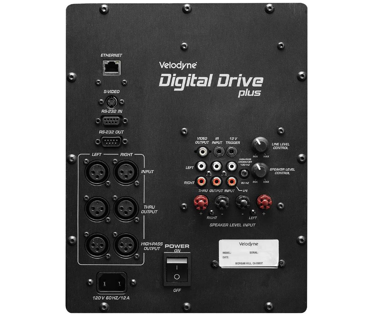 Subwoofer Velodyne Digital Drive 15 Plus je relativno kompaktnih dimenzij, vsaj glede na ekstremno velikost bas enote. Najdaljša stranica prestižnega ohišja s kar 54.4 kg v globino meri 57 cm v širino 46 in višino 51 cm. Pozicioniranje bo posledično enostavno, saj vam ne bo vizualno obremenil prostora. Zna se sam prižgati, ko prejme signal in preide v stanje pripravljenosti v nekaj minutah brez signala. Vgrajen ima še 12V sprožilnik za vklop in izklop skupaj z vašim ojačevalnikom.