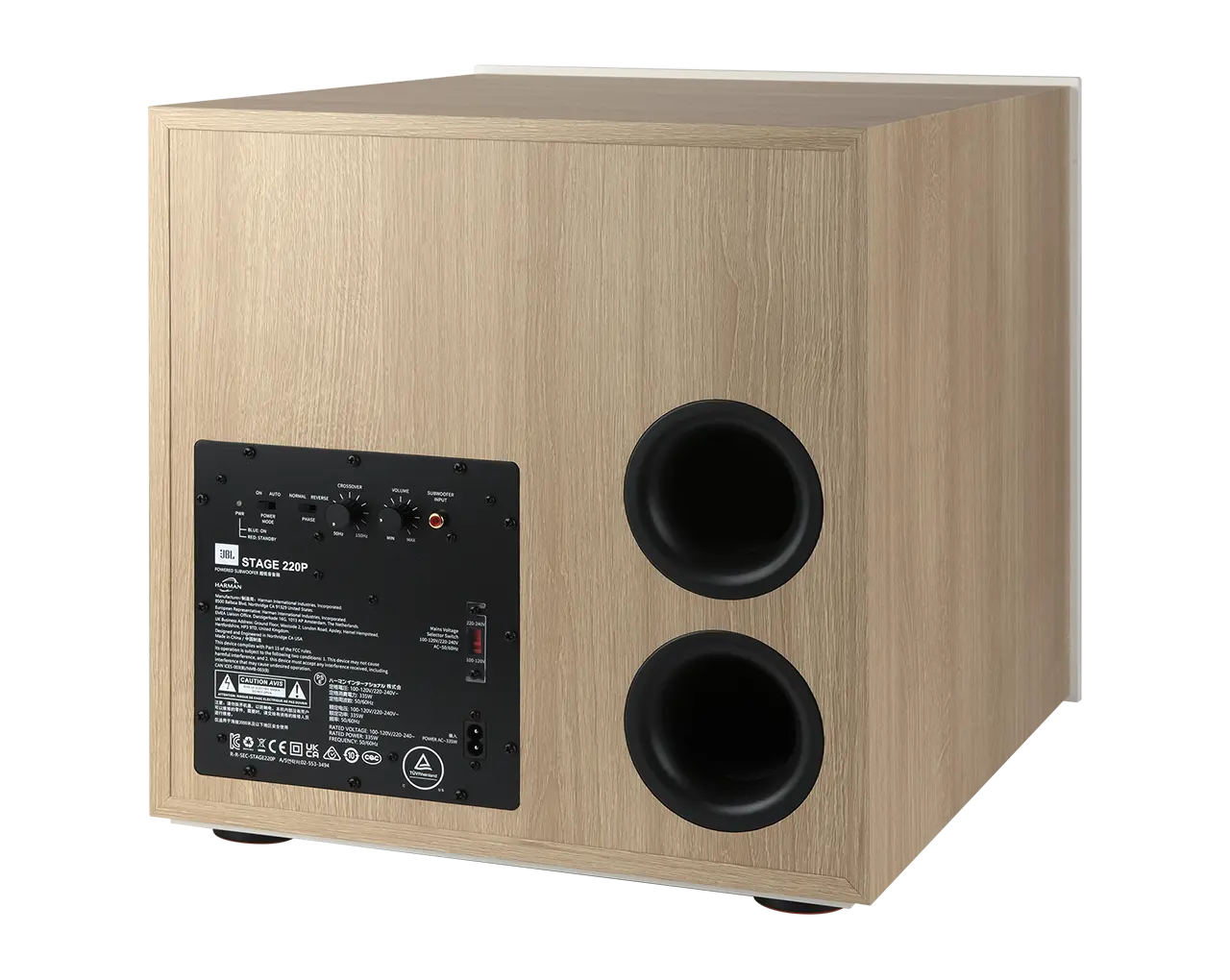 JBL Stage 220P aktivni nizkotonec je bil zasnovan in izdelan v svetovno znanem Centru odličnosti za akustični inženiring v Northridgeu v Kaliforniji. Zmore maksimalnih 500W moči in frekvenčni razpon že od 26Hz dalje.