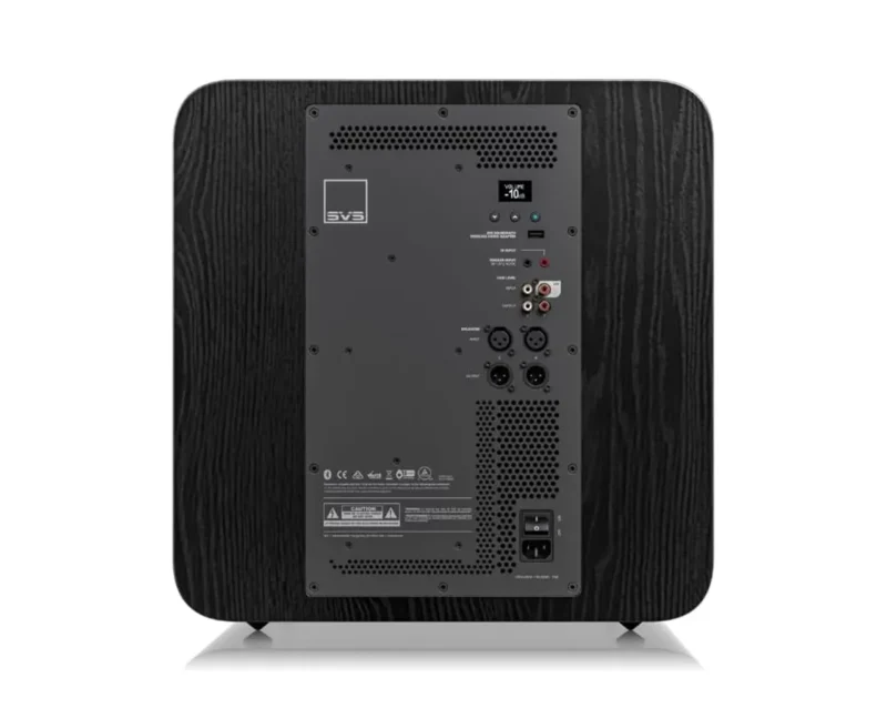 Upravljanje je preprosto: SVS Subwoofer App (iOS/Android/Fire) omogoča nastavitev glasnosti, 6-pasovnega PEQ, filtra, faze, polaritete, Room Gain kompenzacije, spominskih prednastavitev (glasba/film/noč) in Auto EQ (OTA posodobitev). Za hitro ročno upravljanje služi zadnji OLED zaslon. Rezultat je subwoofer, ki v glasbi navduši z artiklirano teksturo in ritmično natančnostjo, v filmu pa z telesno prisotnim, silovitim basom, brez “boom” efekta – tudi v večjih sobah