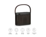 Ohišje je izdelano iz skrbno izbranih materialov – aluminija, lesa in tkanine –, ki zagotavljajo trpežnost in elegantno estetiko. Izbirate lahko med svetlejšim nordijskim hrastom ali temnejšo grafitno različico. Kompaktna oblika in robusten ročaj omogočata enostavno prenašanje in uporabo v vsakem okolju.