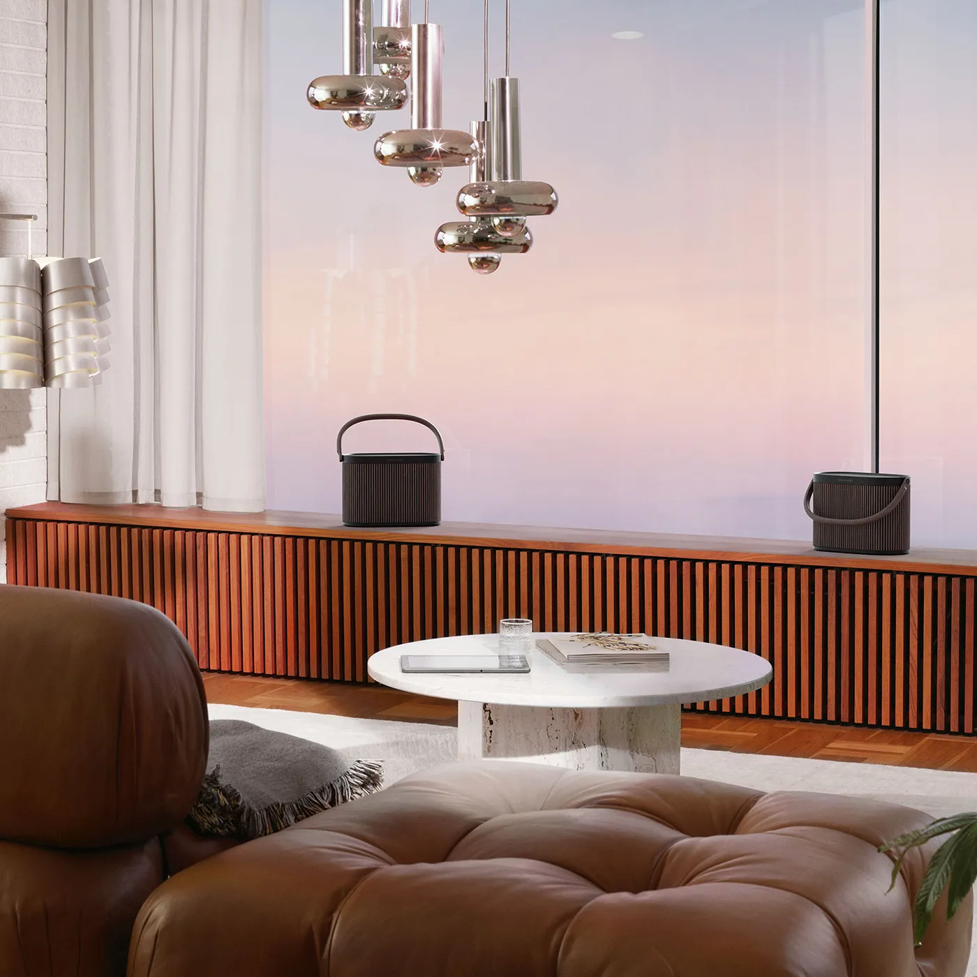Beosound A5 je vrhunski prenosni zvočnik, ki prinaša odličen zvok, prefinjen dizajn in popolno prilagodljivost – vse v eni napravi. Zasnovan je za tiste, ki želijo močan in jasen zvok kjerkoli: doma, na vrtu ali na poti. Zaradi zmogljive 280-vatne ojačitve in usmerjenega 360-stopinjskega zvočnega razpršenja napolni vsak prostor s kakovostno glasbo, ne glede na velikost prostora ali postavitev.