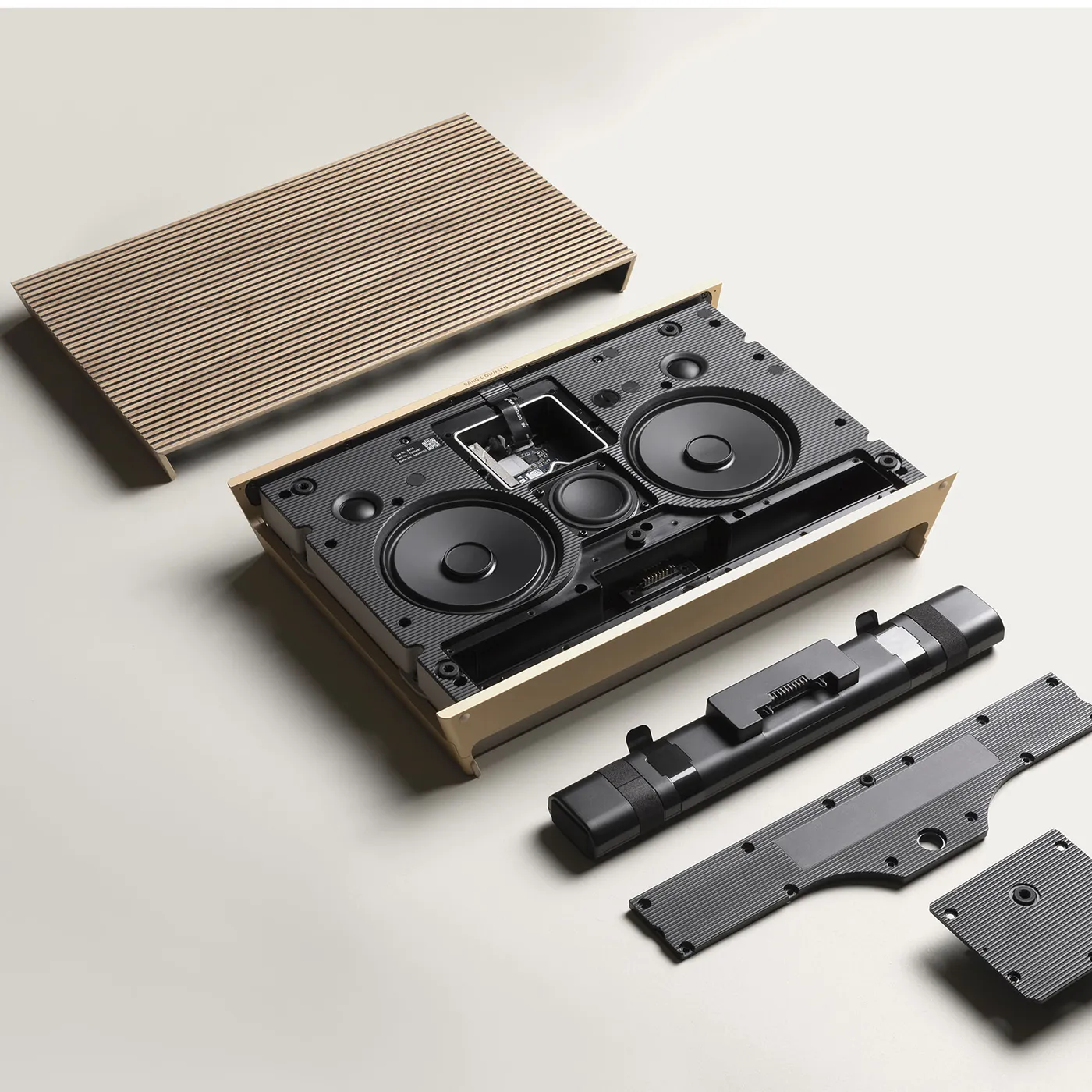 Z edinstveno modularno zasnovo in možnostjo postavitve v treh različnih položajih – pokončno, ležeče ali stensko – se Beosound Level prilagodi vašemu prostoru, ne da bi pri tem žrtvoval kakovost zvoka. Njegovo ohišje je izdelano iz visokokakovostnega aluminija, sprednjo stran pa krasijo tekstilne obloge iz recikliranih materialov ali elegantni hrastov les, kar izraža Bang & Olufsenovo zavezanost trajnostnemu razvoju in brezčasni lepoti.