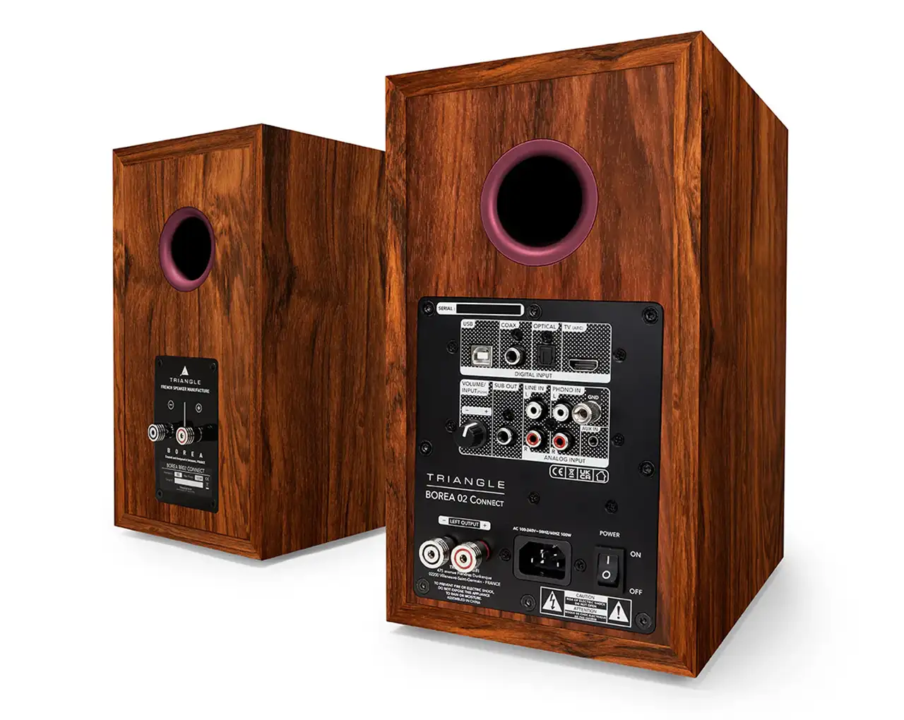 Zvočniki s Hdmi in Bluetooth Triangle BR02 CONNECT z ojačevalnikom razreda D z močjo 2 x 50 W, vgrajenim gramofonskim predojačevalnikom, modulom APTX HD, izkušnjo domačega kina z vhodom ARC TV ter zvokom studijske kakovosti brez izgube podatkov (384KHZ/32BIT, DSD 256).