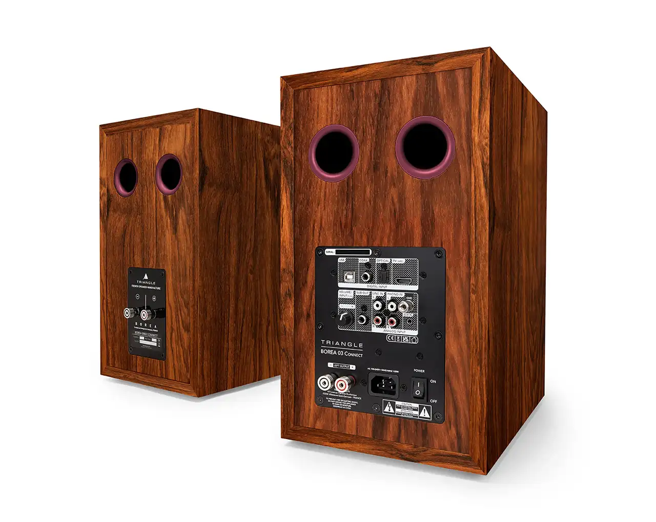 Zvočniki s Hdmi in Bluetooth Triangle BR03 CONNECT z ojačevalnikom razreda D z močjo 2 x 60 W, vgrajenim gramofonskim predojačevalnikom, modulom APTX HD, izkušnjo domačega kina z vhodom ARC TV ter zvokom studijske kakovosti brez izgube podatkov (384KHZ/32BIT, DSD 256).