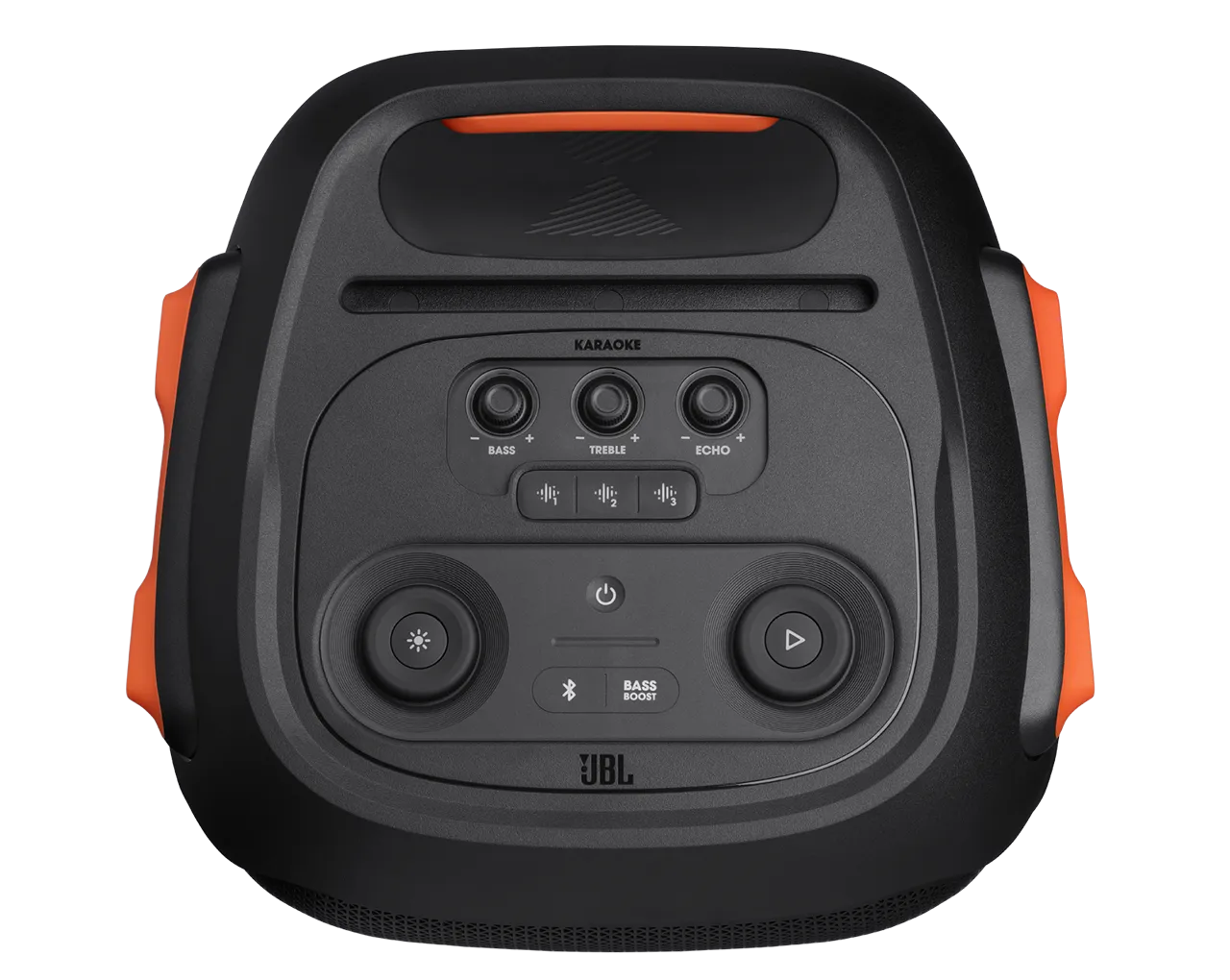 Vgrajene LED luči s prilagodljivimi svetlobnimi vzorci, ki se sinhronizirajo z glasbo. Upravljanje svetlobnih učinkov preko aplikacije JBL PartyBox ali nadzorne plošče na vrhu zvočnika.