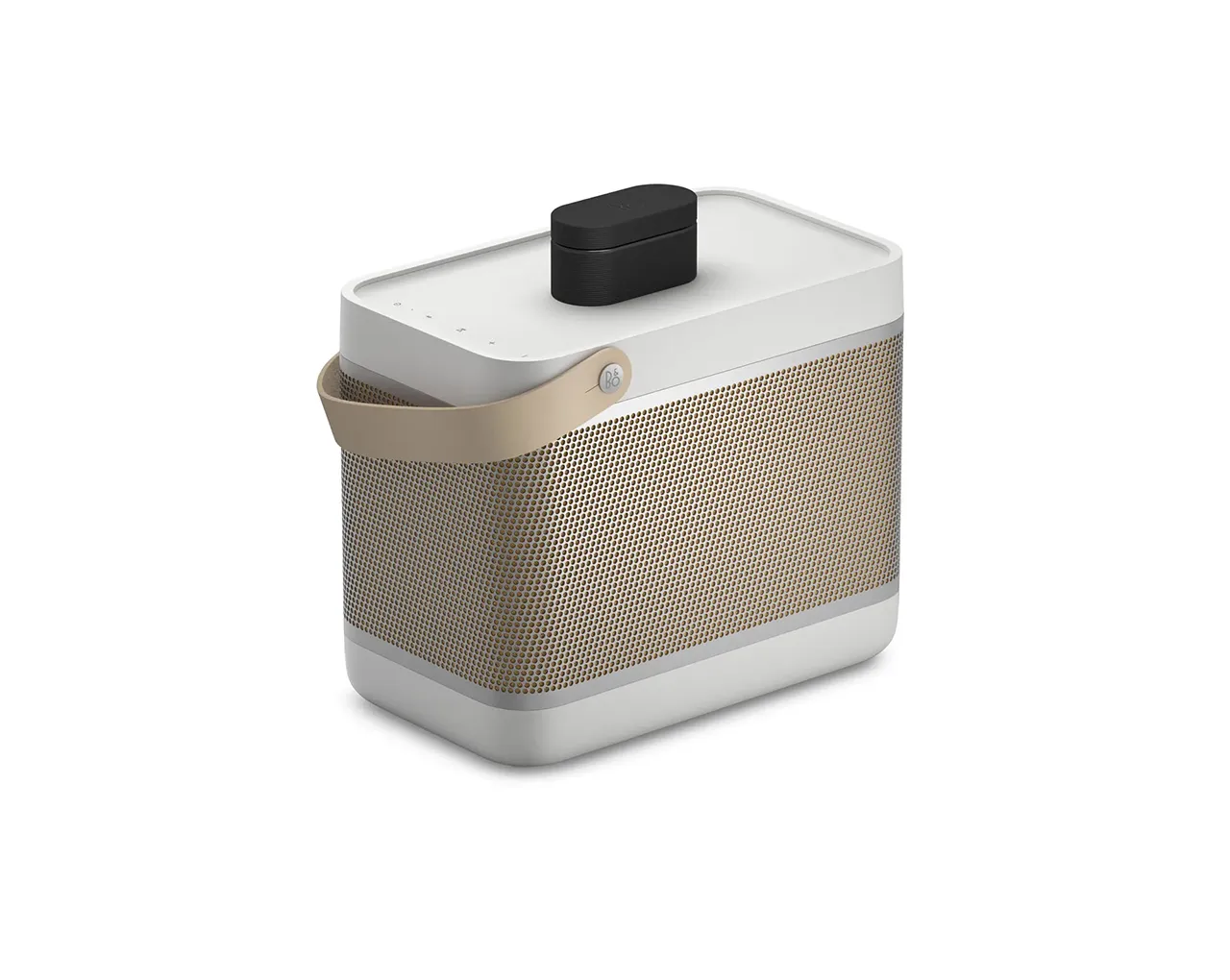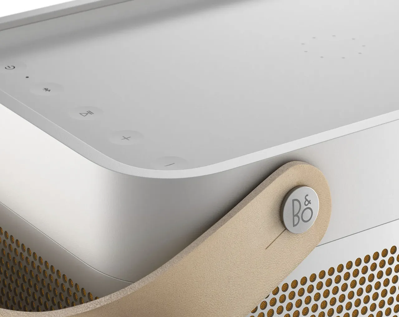 Mogočen zvok v prenosni napravi – Beolit 20 ponuja 360‑stopinjski zvok, močan bass, 8‑urno delovanje baterije, Qi polnjenje ter USB‑C polnjenje, zapakirano v vrhunsko oblikovano ohišje z usnjenim ročajem