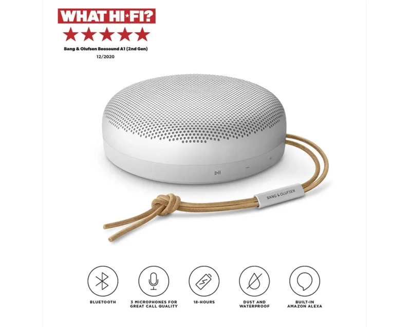 Povezljivost je brezhibna: Bluetooth 5.1 z multipoint podporo omogoča povezavo z dvema napravama hkrati, stereo pairing pa odpira možnost pravega brezžičnega stereo zvoka z dvema enakima zvočnikoma. Z Amazon Alexa glasovno podporo in možnostjo napredne prilagoditve zvoka preko aplikacije Bang & Olufsen, je Beosound A1 vaš pametni spremljevalec – kjerkoli in kadarkoli.
