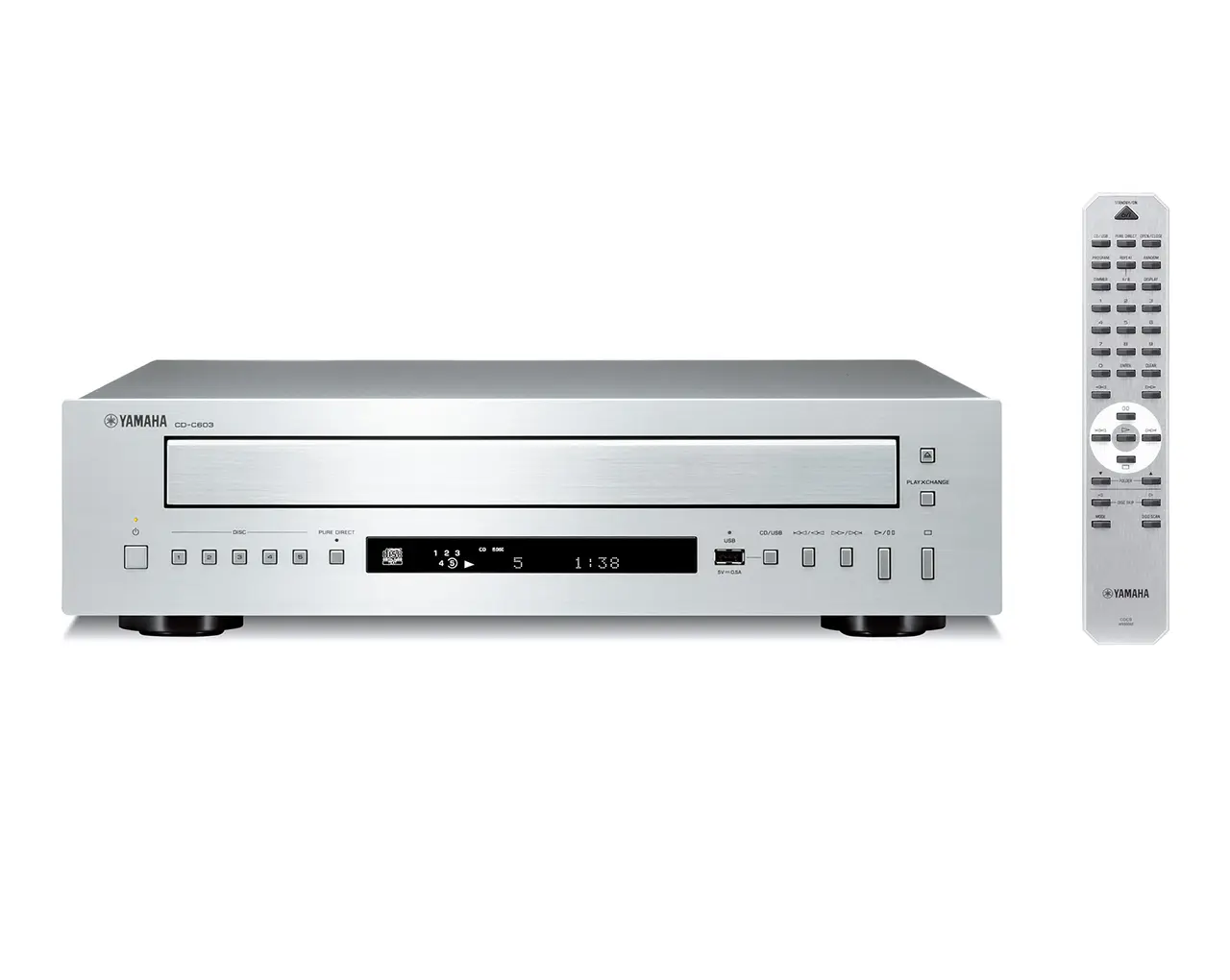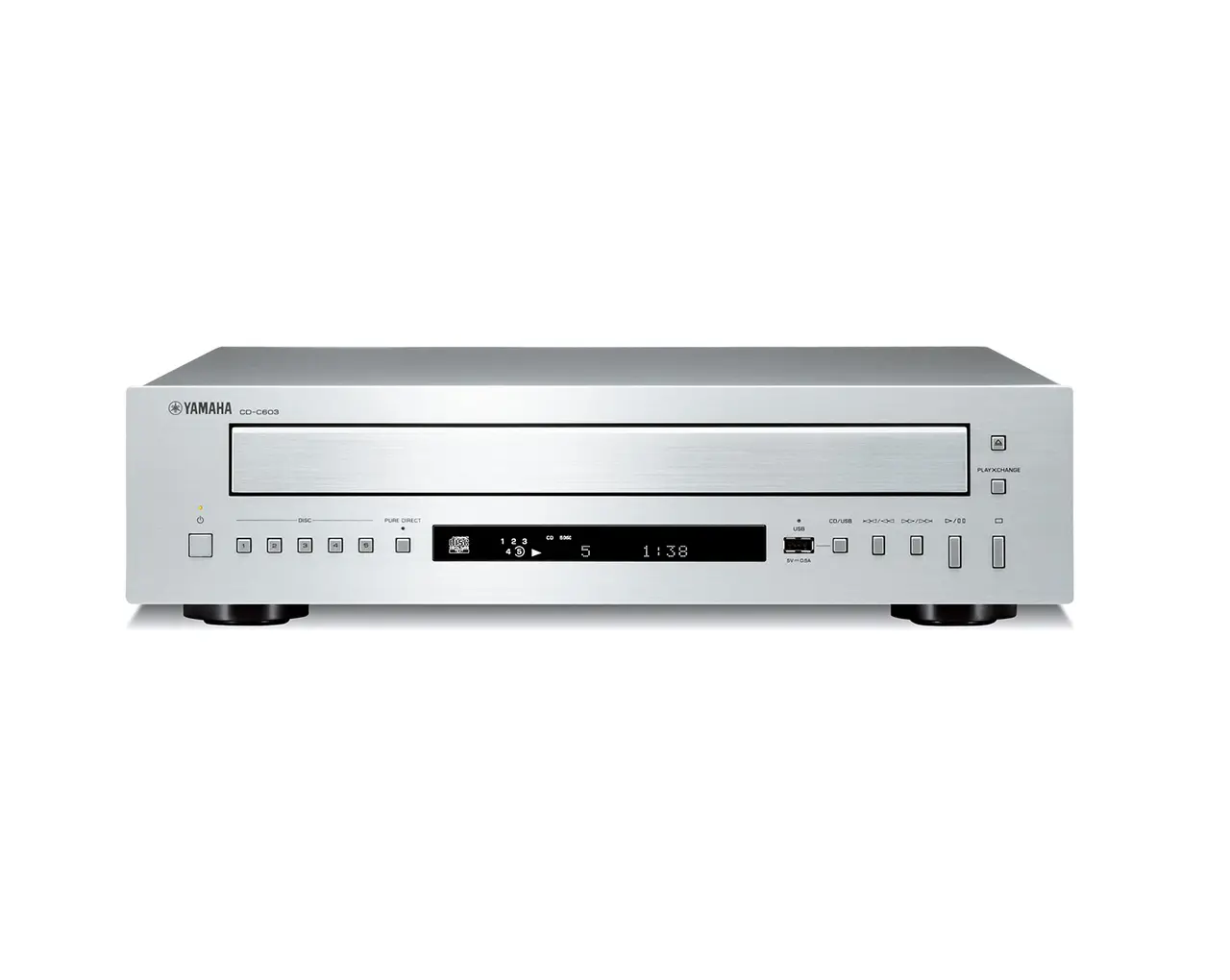 CD Izmenjevalec YAMAHA CD-C603 ponuja kakovosten zvok, enostavno uporabo in specialno funkcionalnost dražjih modelov, kot so Pure Direct, Inteligentni digitalni servo, itd. Preko USB je kompatibilen s formati MP3, WMA, AAC, WAV in FLAC. Slednja dva podpira do 24 bitov in 96kHz vzorčenja.
