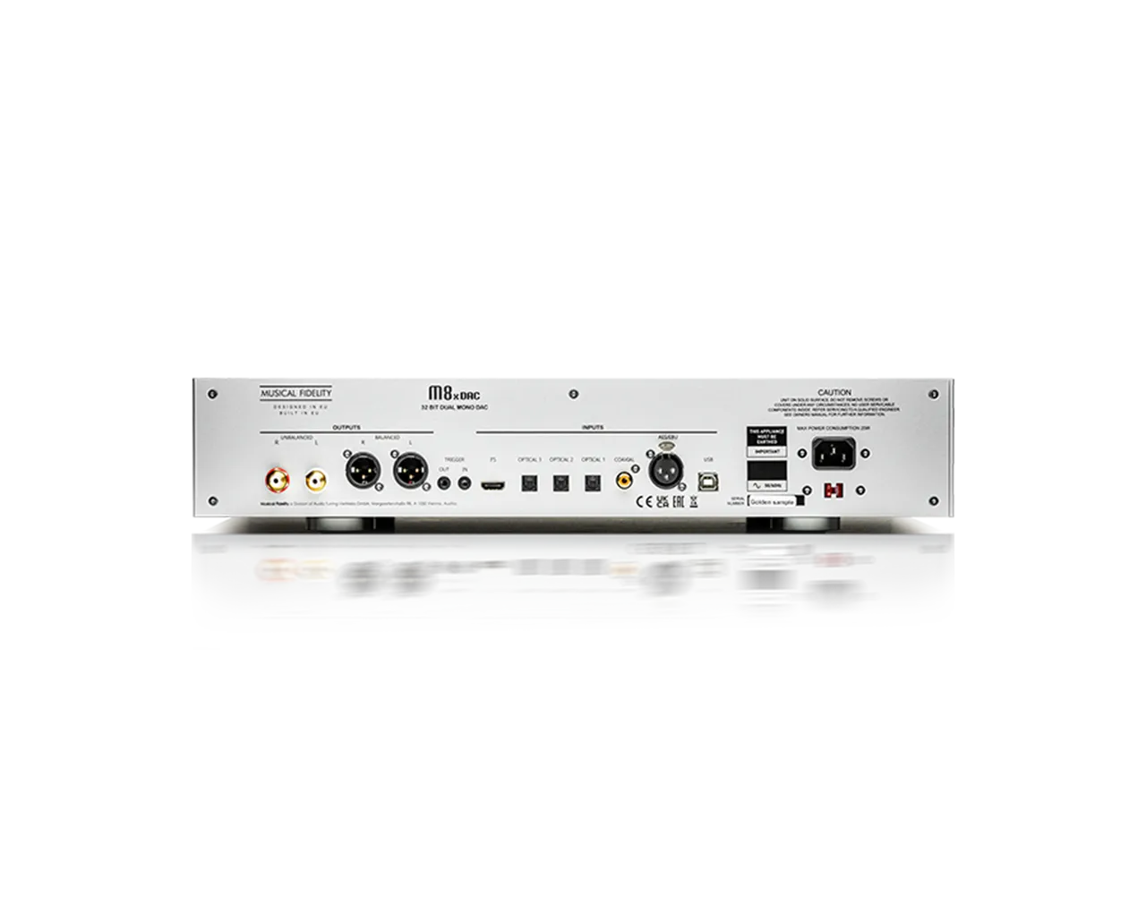Zasnova M8x DAC ni le tehnično dovršena, ampak tudi estetsko skladna z najvišjimi standardi blagovne znamke Musical Fidelity. Zaradi aluminijastega ohišja z notranjo strukturo, ki preprečuje resonanco, naprava ne zagotavlja le stabilnosti delovanja, temveč tudi vizualno eleganco, ki se ujema z vsakim high-end sistemom.