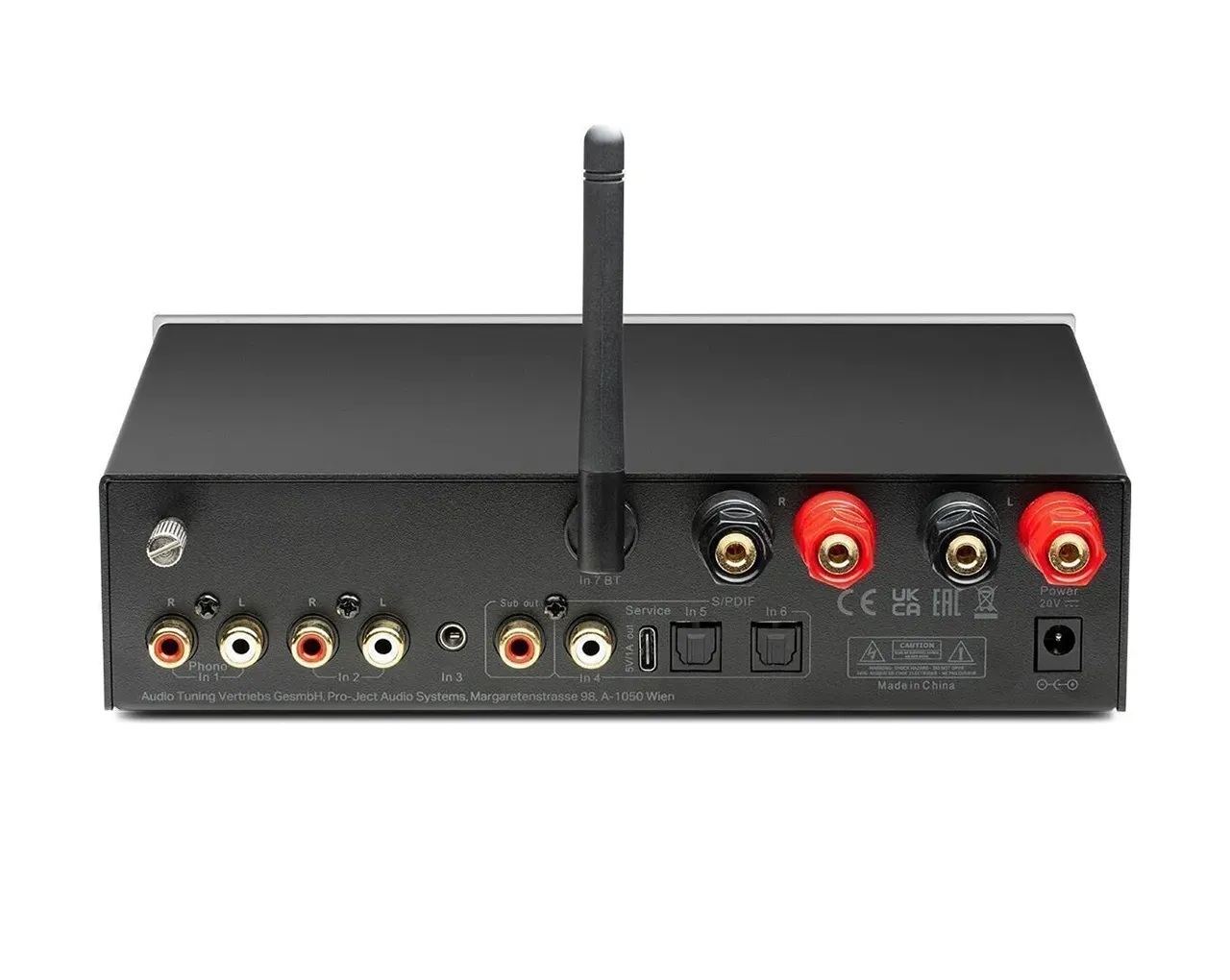 Ojačevalnik vključuje več analognih in digitalnih vhodov, zato lahko poleg gramofona priključite tudi druge vire zvoka, kot so streamer, televizor ali CD predvajalnik. Vgrajen phono vhod omogoča neposredno povezavo gramofona, brez potrebe po dodatnem phono predojačevalniku.