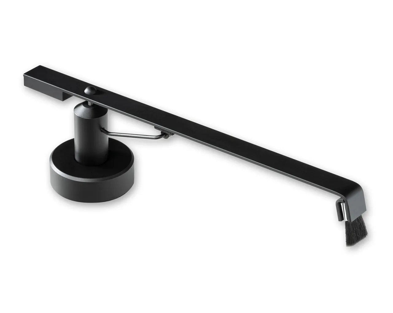 Težko osnovno stojalo omogoča stabilno namestitev na gramofon, medtem ko enotočkovna roka (uni-pivot) natančno sledi utorom in učinkovito odstranjuje prah.