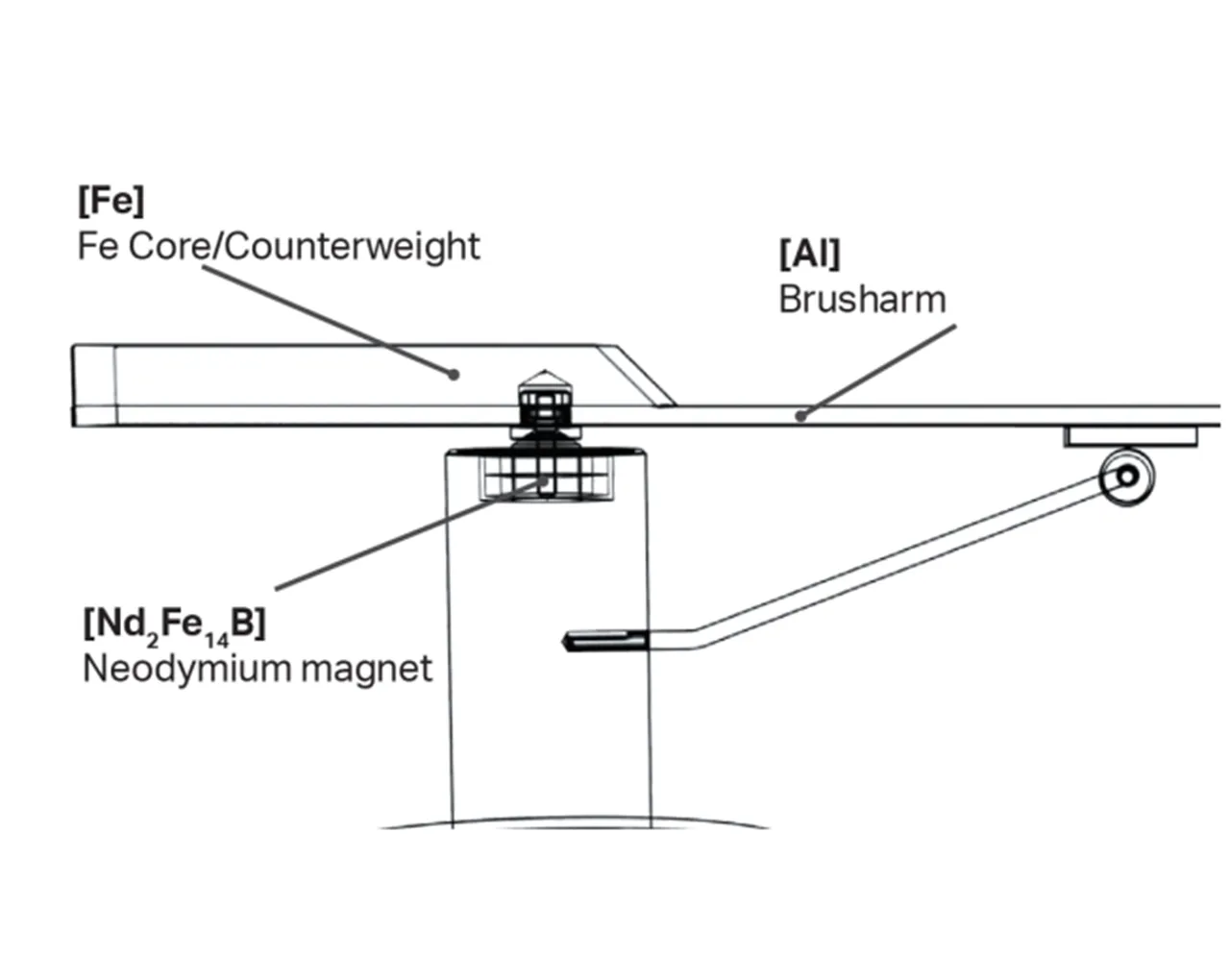 Tudi aluminijasto ohišje, zaradi svojih paramagnetnih lastnosti, dodatno vpliva na uravnoteženje sile.