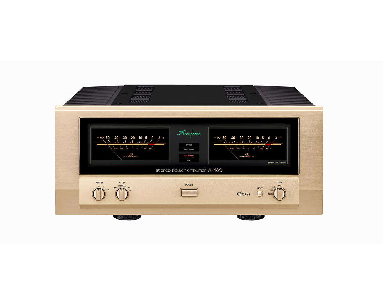 Accuphase A-48S postavlja nove standarde v svetu vrhunskega zvoka. Razvit z najnaprednejšo tehnologijo in v priznani kakovosti Accuphase, ta Class A ojačevalnik moči zagotavlja izjemno zmogljivost. Z MOS-FET tranzistorji v 6-kratni paralelni push-pull konfiguraciji A-48S zagotavlja linearno izhodno moč do 400 W pri 1 ohmu.