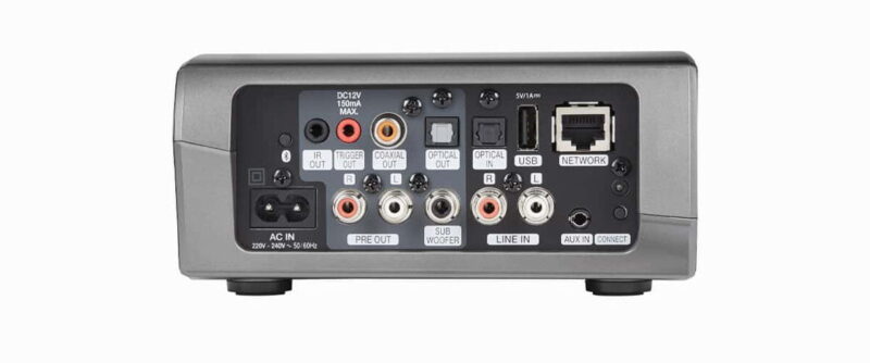 Uporabljate ga lahko kot klasičen mrežni predvajalnik vsebin na svojem ojačevalniku ali v načinu predojačevalec. Za ta namen ima analogni izhod za nizkotonec in predojačevalni sklop in ga lahko povežete z aktivnimi zvočniki ali močnostnim ojačevalcem. V primeru predojačevalca, boste jakost zvoka krmilili preko njega direktno ali preko aplikacije Heos.
