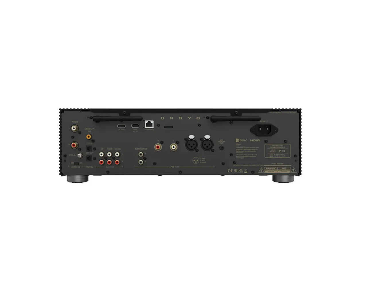 Onkyo P-80 je vrhunski mrežni predojačevalnik z vgrajenim streamerjem, 32-bit / 768 kHz DAC-om in napredno Dirac Live korekcijo prostora. Podpira Spotify Connect, TIDAL, Roon Ready, HDMI ARC ter analogne in digitalne vhode. Idealen je kot centralni del sodobnega Hi-Fi sistema za vrhunsko reprodukcijo glasbe.