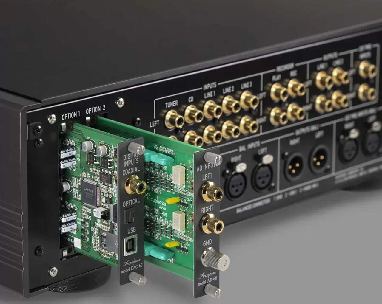 Accuphase je prestižna japonska avdiofilska blagovna znamka, ustanovljena leta 1972. Podjetje je specializirano za vrhunsko visokozmogljivo avdio opremo, kot so ojačevalniki, predvajalniki CD-jev, DAC-ji in pred-ojačevalniki. Accuphase je znan po brezkompromisni kakovosti izdelave, vrhunskem zvoku ter elegantnem, klasičnem oblikovanju z zlatimi in bakrenimi detajli. Njihovi izdelki so priljubljeni med ljubitelji glasbe in avdiofili zaradi izjemne zanesljivosti, dolgotrajnosti in natančne reprodukcije zvoka. Blagovna znamka stavi na ročno izdelavo in precizno inženirstvo, kar jo postavlja med najbolj cenjene znamke v svetu avdio tehnologije.