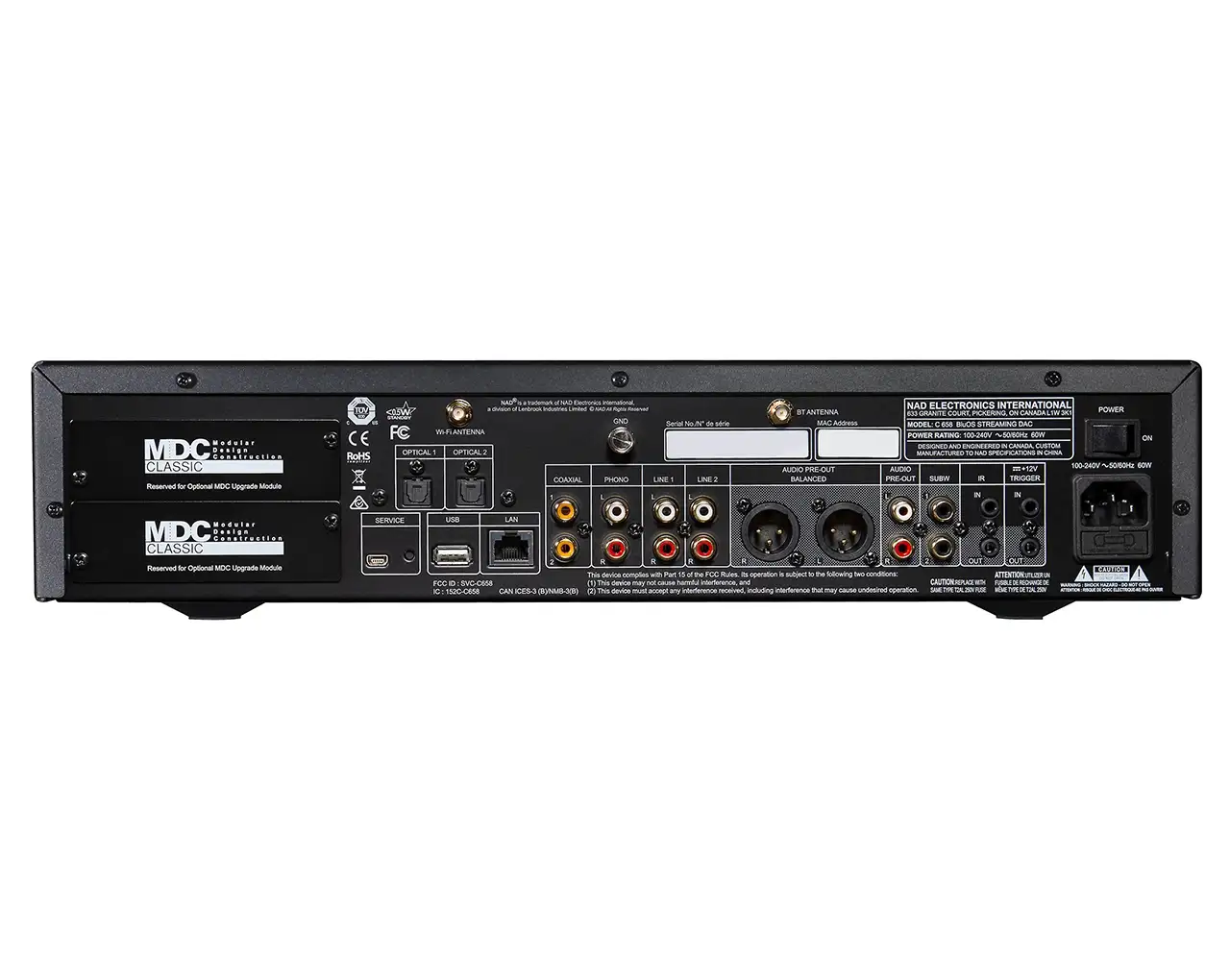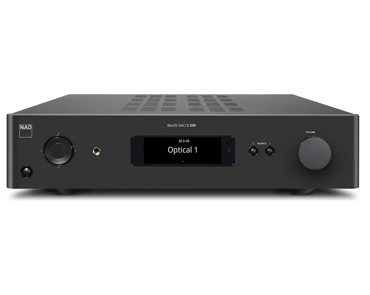 Večina komponent NAD je že 45 let visoke ločljivosti z zelo široko pasovno širino, nizkim popačenjem in ultra nizkim šumom. Nikoli nismo imeli izvornega materiala visoke ločljivosti za predvajanje. Z digitalnim snemanjem in pretakanjem v visoki ločljivosti v kombinaciji z napredno tehnologijo, kot je MQA, založbe odpirajo svoje trezorje in objavljajo posnetke studijske kakovosti Master. Dekodiranje MQA je na voljo prek vsebine BluOS Streaming. C 658 ima čisto visoko ločljivost od vhoda do izhoda in ima 32-bitni DAC ESS Sabre, enega najzmogljivejših DAC-jev na trgu danes s svojim dinamičnim razponom 118 dB.