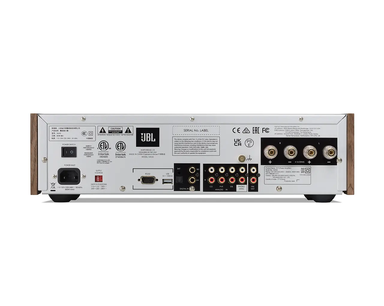 Retro izgled z lesenimi orehovimi stranicami in velikimi stikali na prednji plošči, je nekaj za ljubitelje HiFi klasik. JBL SA550 namreč bazira na legendarnem ojačevalcu SA600 iz 1960 leta.