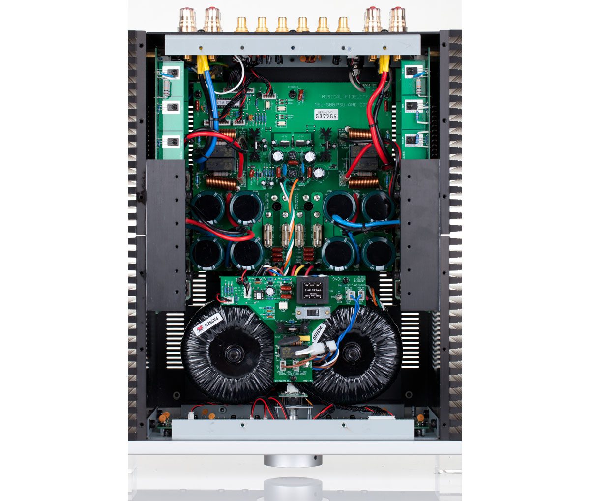 V notranjosti je Musical Fidelity M6si500 konfiguriran kot neodvisna monoblok konstrukcija ojačevalnika z ločenim predojačevalnikom. Pravzaprav gre za predhodni ojačevalnik z dvema monobloknima ojačevalcema in dvojno napajalno sekcijo. Zmore vrhunskih 500W na kanal pri 8Ohm in ima pri tem zelo nizko popačenje, skoraj nezaznavnih 0,01%. Izjemno razmerje signal šum in izredno linearen frekvenčni odziv omogoča poslušanje glasbe na najvišjem možnem nivoju.