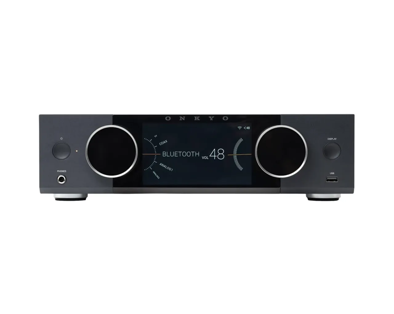 Na sprednji strani naprave je velik 5,46-palčni barvni LCD zaslon, ki prikazuje informacije o predvajanju, naslov skladbe in vizualni VU meter. Uporabniška izkušnja je moderna, pregledna in prijetna, upravljanje pa je mogoče tudi prek Onkyo Controller aplikacije.
