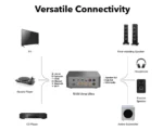 - 100 W Hi-Fi ojačevalnik z izjemno čistim zvokom: z močjo 100 W pri 8 ohmih (200 W pri 4 ohmih) in ultra nizkim popačenjem (–106 dB THD+N) ponuja jasen, močan in uravnotežen zvok – idealen za domače kino ali hi-fi sistem.