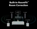 - Sobna korekcija RoomFit za optimalen zvok v vsakem prostoru: naprava samodejno kalibrira zvok glede na akustiko prostora in lastnosti zvočnikov ter tako zagotovi prilagojeno zvočno izkušnjo.