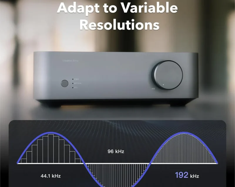 Ojačevalnik samodejno prilagaja vzorčno frekvenco in globino bita glede na vir, da zagotovi optimalno reprodukcijo brez nezaželenih artefaktov, kot so poki ali kliki.