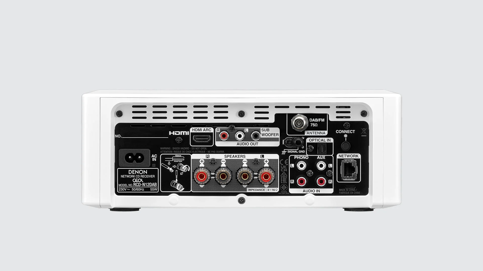 Predvajajte svojo osebno glasbeno zbirko – tudi v visoki ločljivosti. CD/Receiver Denon RCD-N12DAB podpira vse glavne forme pretakanja. Vse odlične glasbene storitve so v celoti integrirane. Ali pa poslušajte kakovostne radijske postaje v digitalni obliki DAB +. Nastavite razpoloženje, ki je trenutno ravno pravšnje.