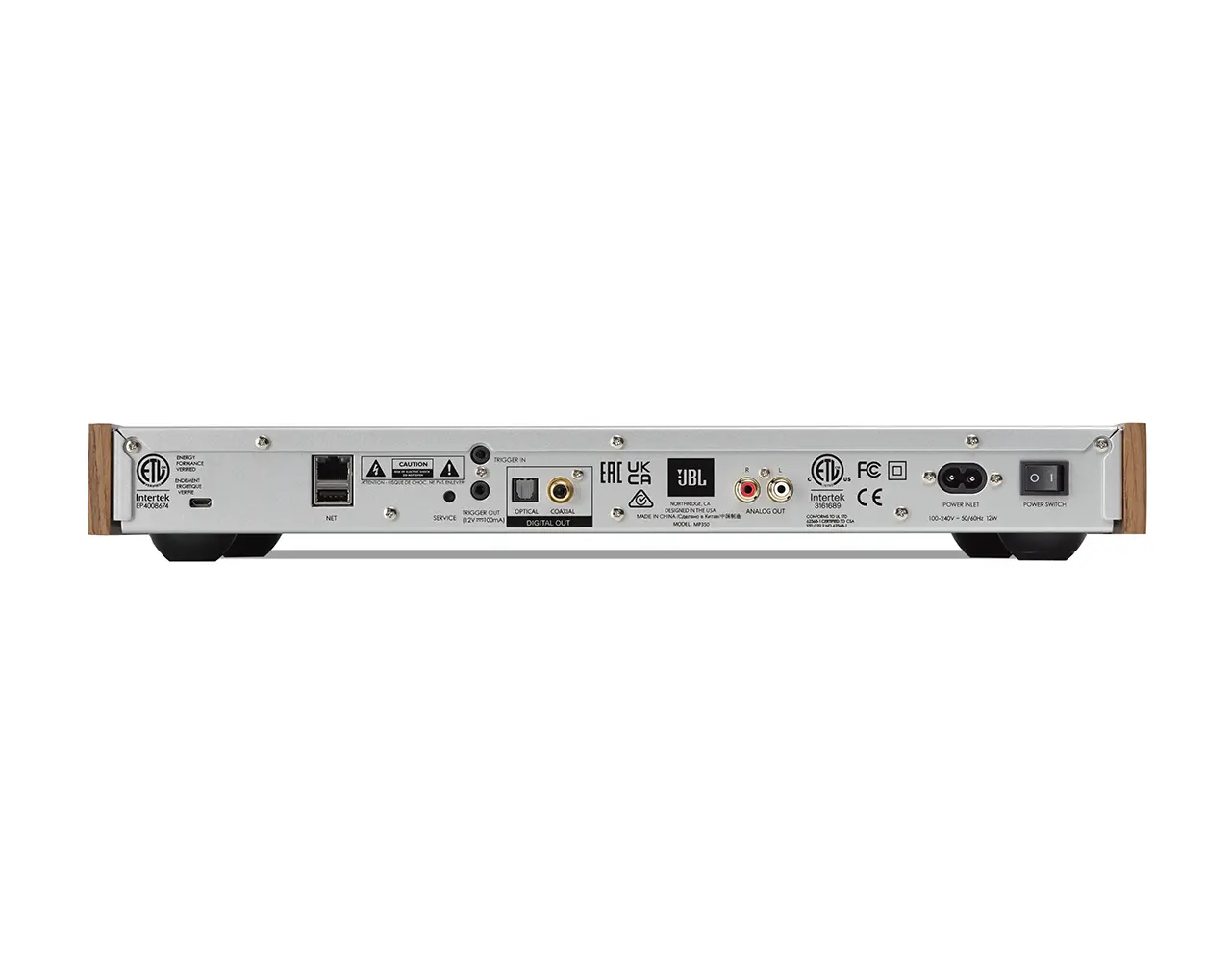 Pretočni predvajalnik JBL MP350 ponuja velik nabor funkcij, ki podpira večino pametnih telefonov in tablic ter priljubljene storitve pretakanja. Povežite MP350 z domačim omrežjem z Wi-Fi ali Ethernetom in uživajte v takojšnjem predvajanju z Apple Airplay2 ali Google Chromecast. Predvajal bo glasbo neposredno iz Spotify Connect in Tidal Connect, za napredne uporabnike je popolnoma pripravljen za Roon Ready, vse s podporo za Hi-res in MQA.