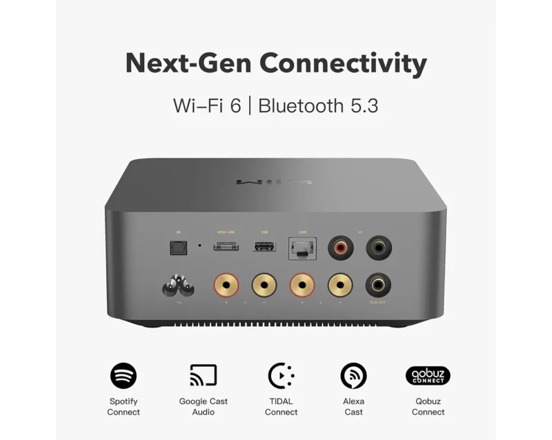 Sistem je namenjen vsem željnim pravega stereo Hi-Fi zvoka, ki si občasno radi ogledajo film v surround tehniki, ne bi pa radi vlekli kablov po prostoru. WiiM amp ULTRA je ojačevalec z izredno dinamično močjo, omogoča dostop do pretočnih vsebin kot so internetni radiji, Tidal, Spotify, Deezer in ostali. Je ekstremno majhen in ima zaslon na dotik.