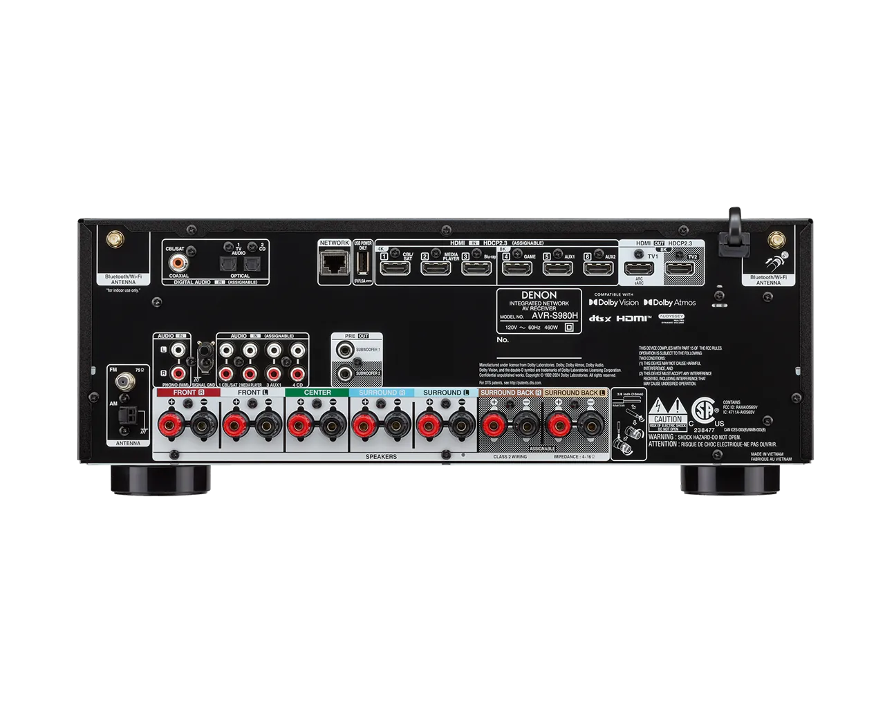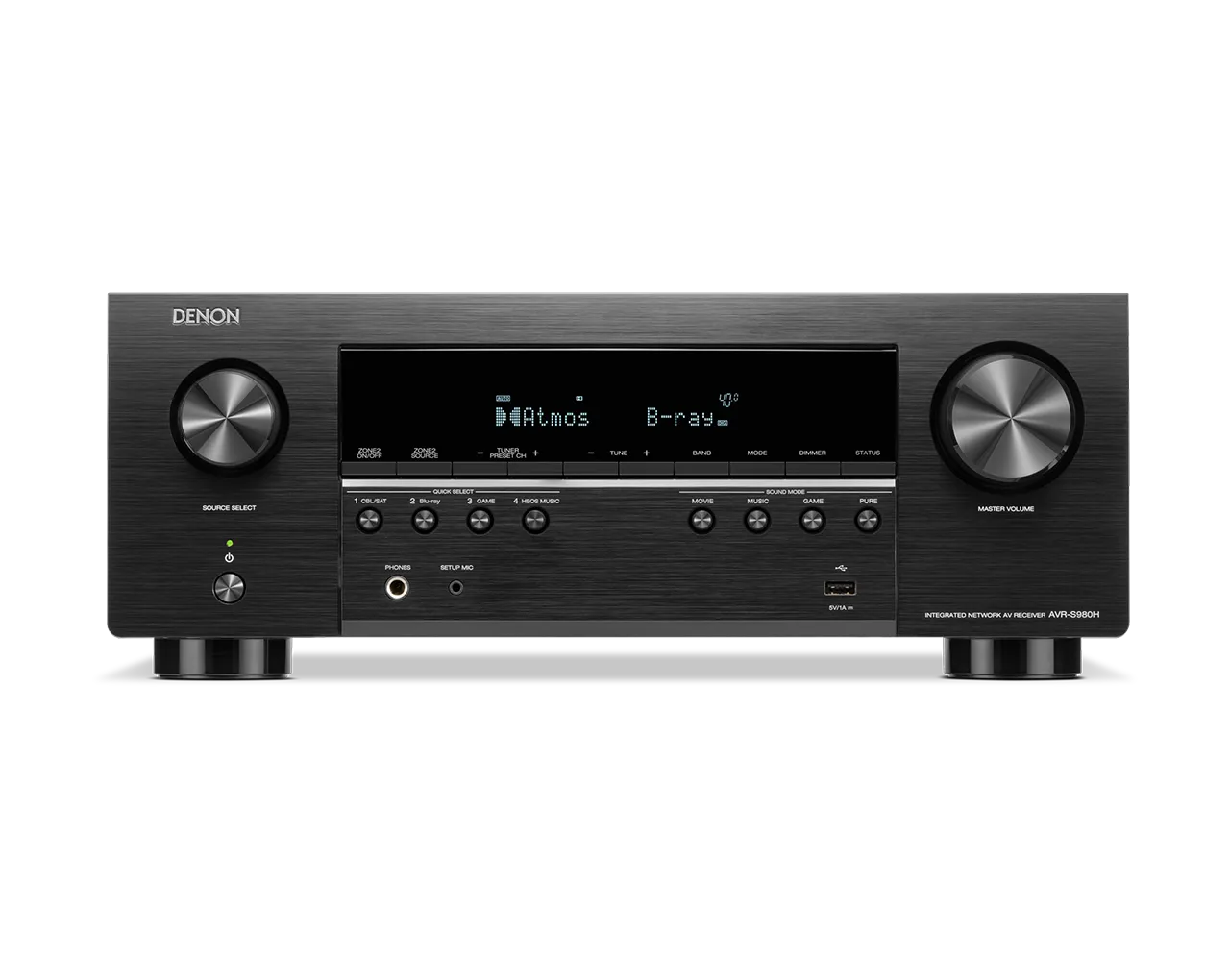Z diskretno visoko kakovostnimi ojačevalniki na vseh kanalih Denon AVR-S980H dostavlja visoko realno moč 2 x 90W RMS na 8ohm. Denon pri gnanih petih kanalih še vedno iztisne iz sebe 70% deklarirane sinsne vrednosti, kar je zelo pohvalno v tem razredu.
