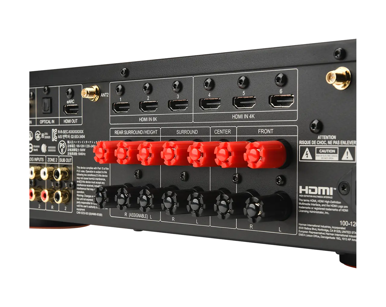 Močni 7.2 kanalni AV receiver popolnoma realistično predstavi vsebino na ekranu. JBL MA710 je združljiv z najnovejšim 8K standardom za popolno kino doživetje ali povezavo s PS5 kjer boste izkoristili 4K120Hz povezavo in sledeče hieroglife: VRR, ALLM, QFT.