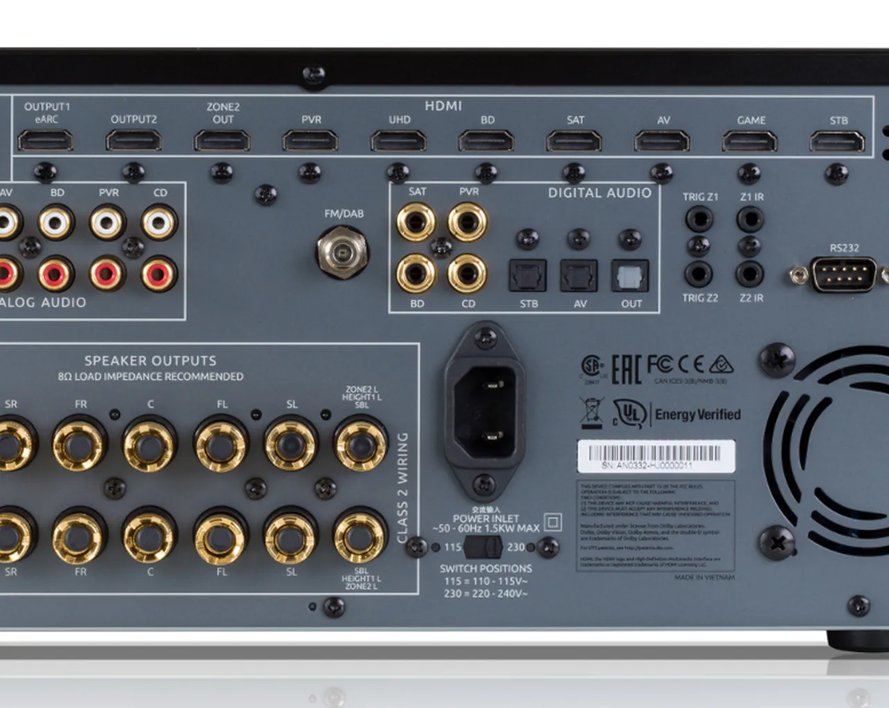 Zmore 120W prave sinusne moči na kanal ob predvajanju celotnega frekvenčnega območja pri impedanci 8 ohm. Pri gnanih 7 kanalih je moč neverjetnih 100W na kanal. Gre za ojačitev z veliko dinamike in ne kot smo vajeni pri klasičnih AV ojačitvah ojačitvah, kjer ostanemo ravnodušni, ko želimo slišati globino in širino zvoka.