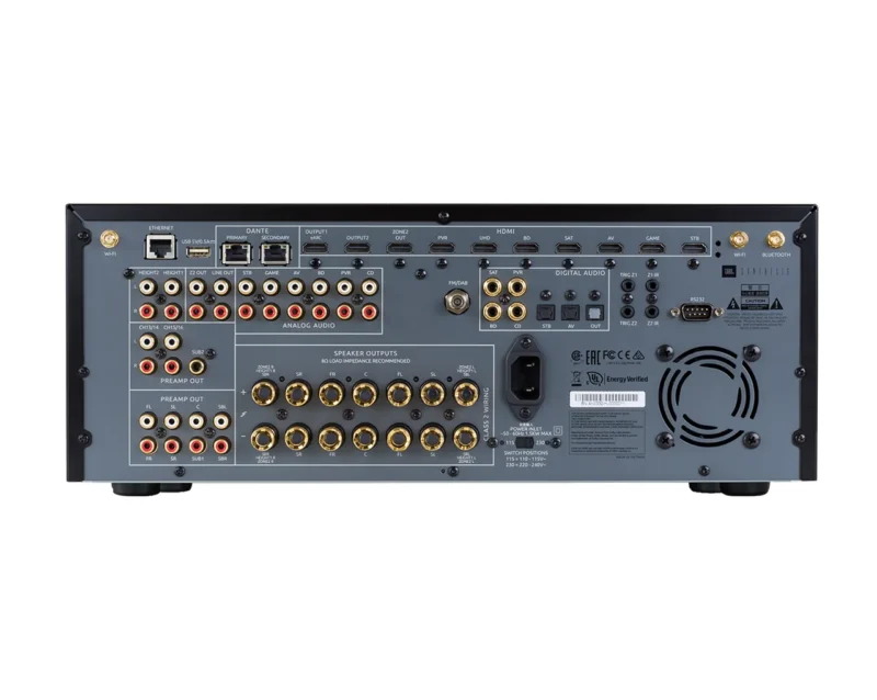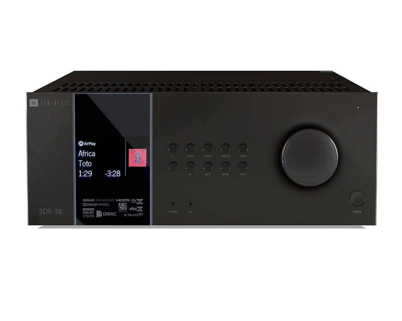 High End AV sprejemnik JBL Synthesis SDR38 je zgrajen okrog ojačevalnika v G-klasi in ima 16 kanalno procesiranje zvoka.