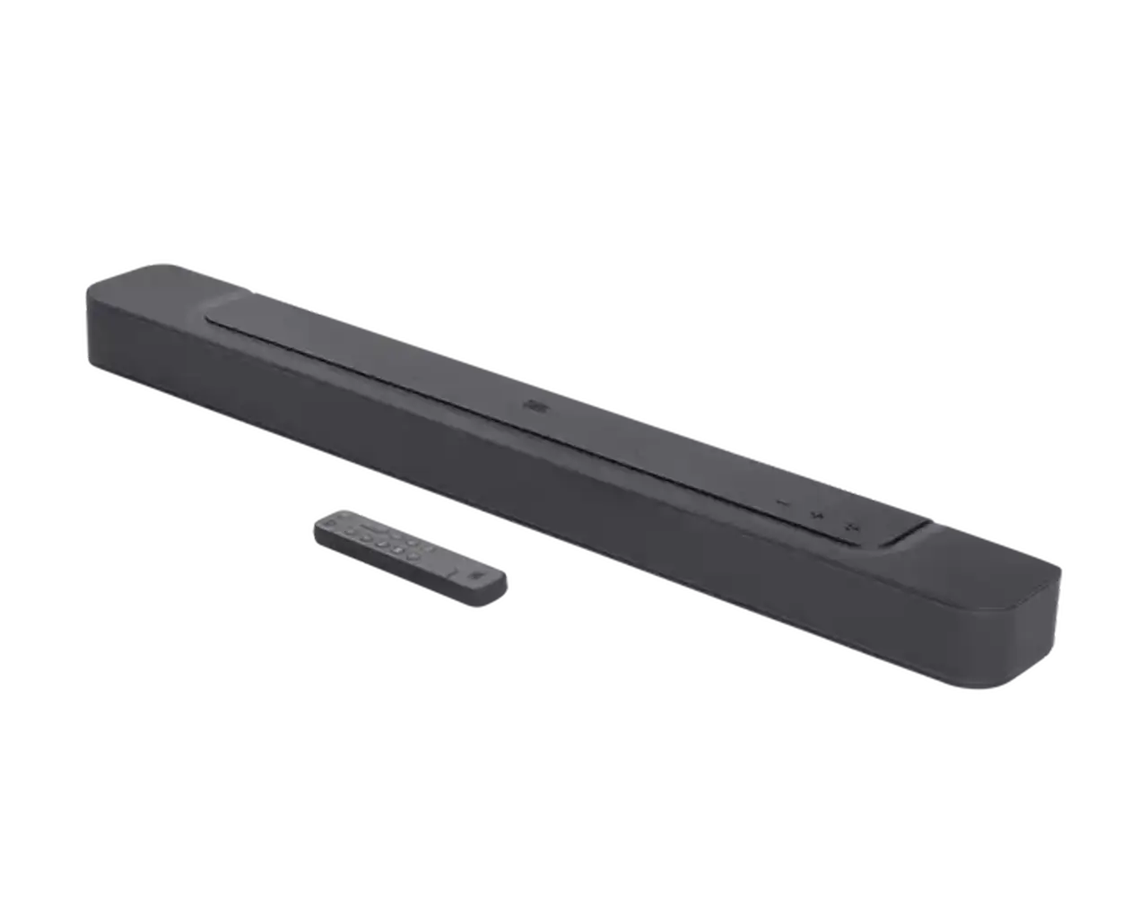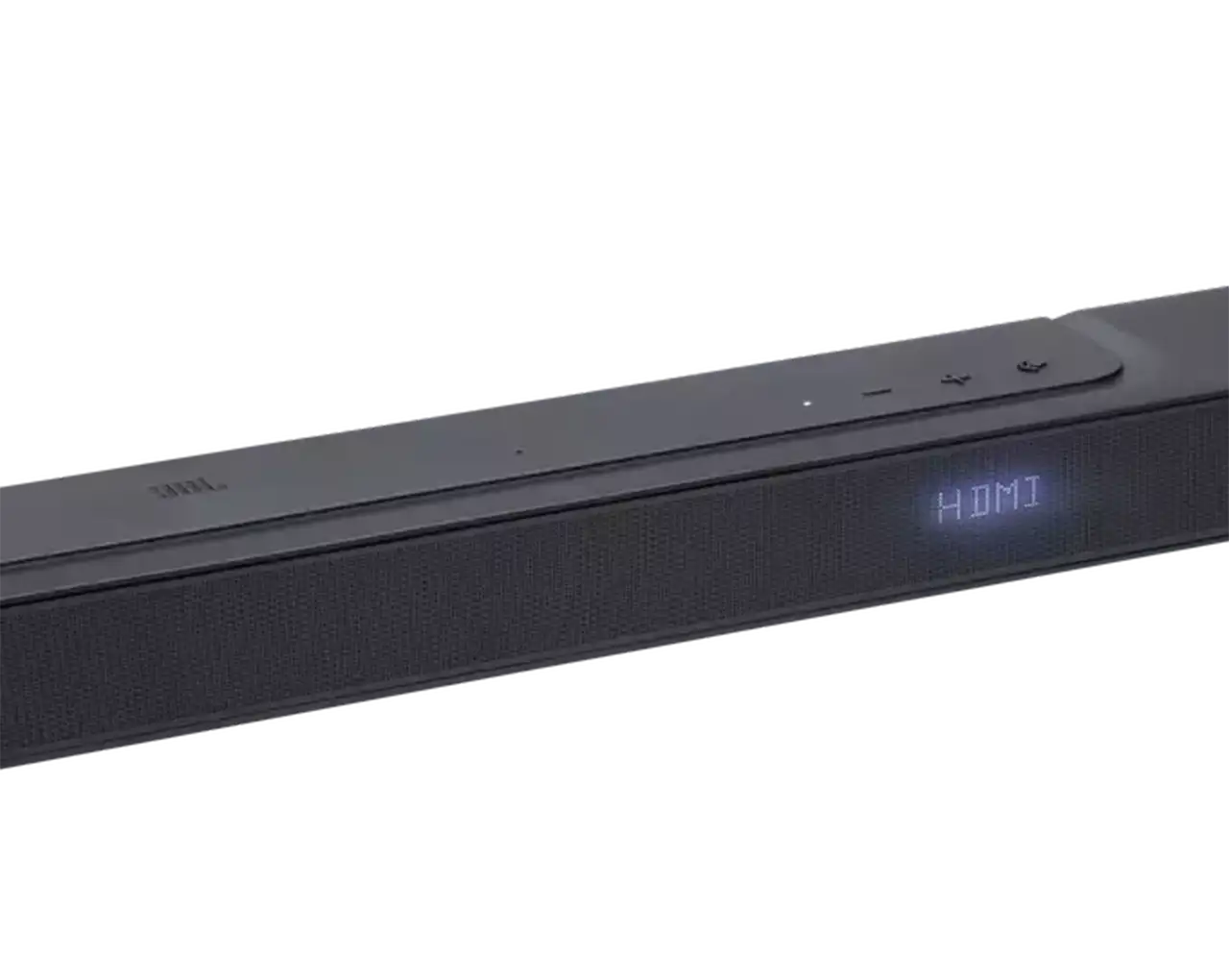 Naj vas kompaktna velikost JBL Bar 300 ne zavede. Vasi domač kinematografski izkušnji daje okrepitev močnih nizkih tonov Iz vgrajenega bas porta, kar vsakemu akciiskemu prizoru doda več razburliivosti in vsaki pesmi več globine.