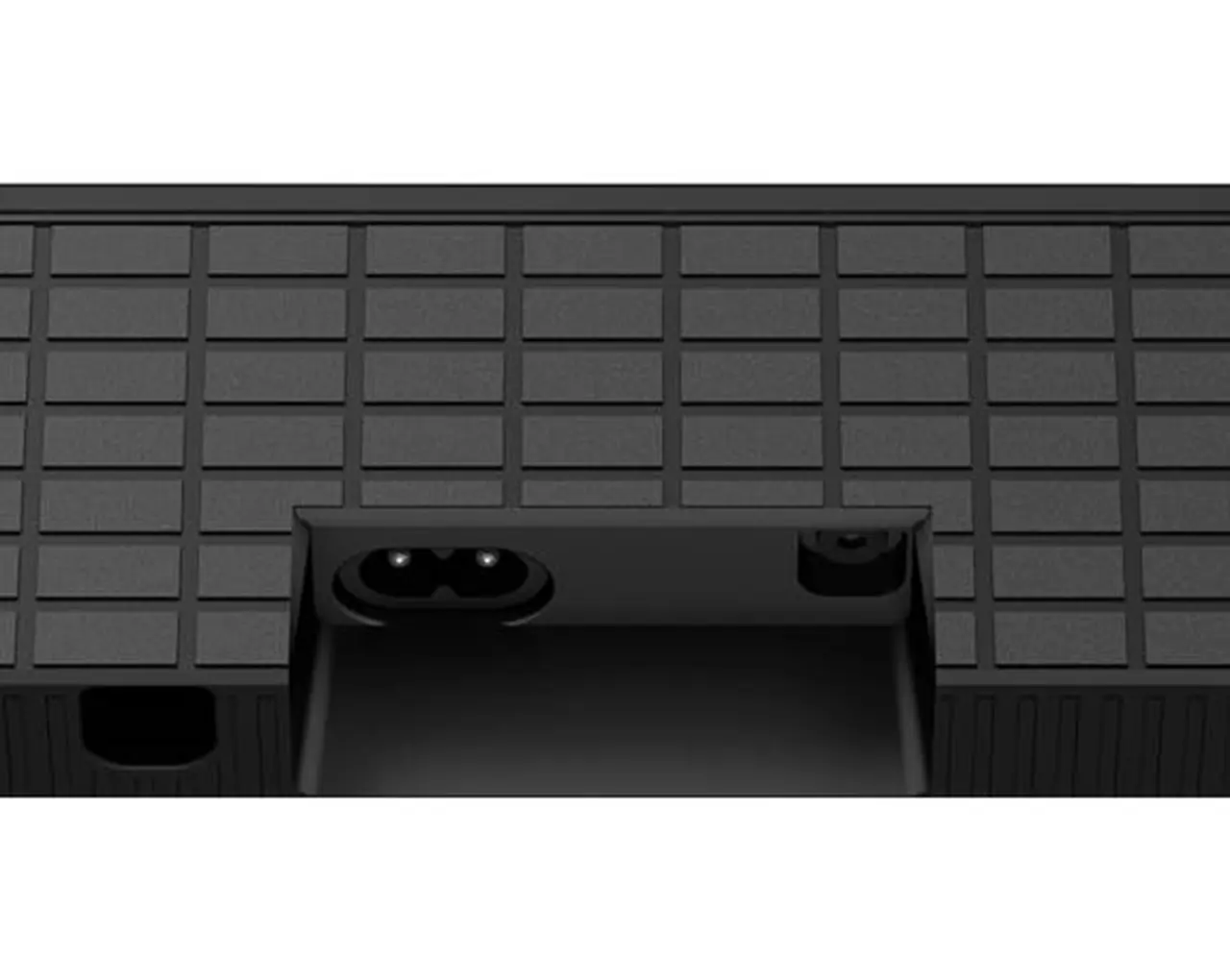 - X-Balanced pravokotna zasnova nizkotonca pomaga sprednjim zvočnikom, navzgor usmerjenim zvočnikom in stransko usmerjenim zvočnikom zagotavljati močnejše nizke tone in boljšo jasnost