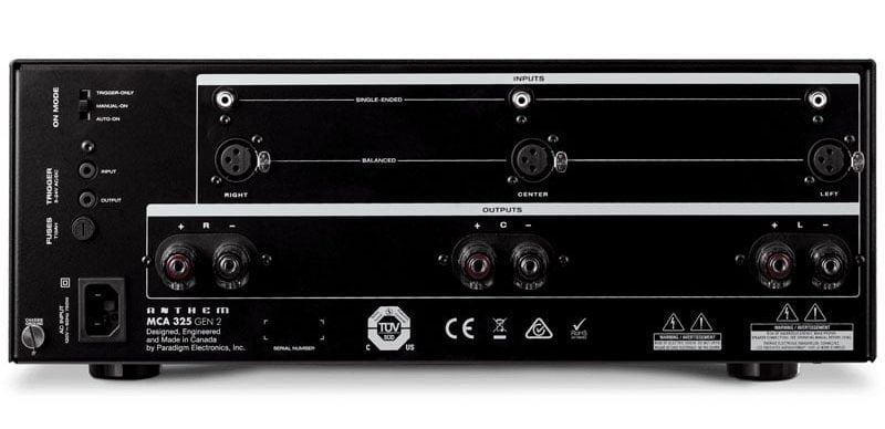 Anthem MCA 325 ima klasične RCA in uravnotežene XLR vhodne terminale. S pomočjo 12v sprožilca se vam bo ojačevalnik zagnal ob vklopu procesorja ali receiverja. Če sprožilca na kontrolni enoti nimate, bo MCA 325 oživel, ko bo vanj prišel zadosti močan signal.