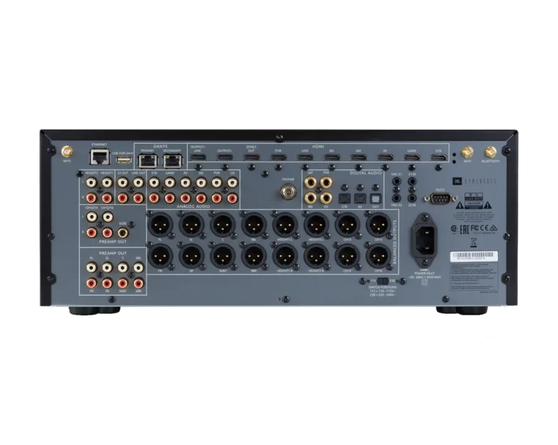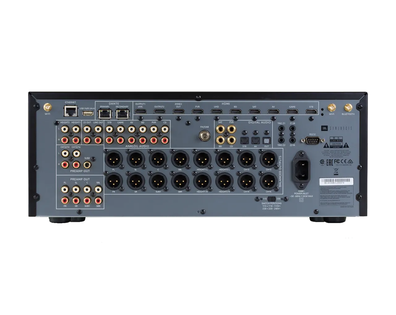 S priloženim (ločeno prodajanim) rack nosilcem, podporo za DANTE, eARC, Dirac Live z več-subwoofer nadzorom (Multi-sub Bass Control) ter IP in RS232 upravljanjem je namestitev, konfiguracija in kalibracija hitrejša kot kadarkoli doslej.