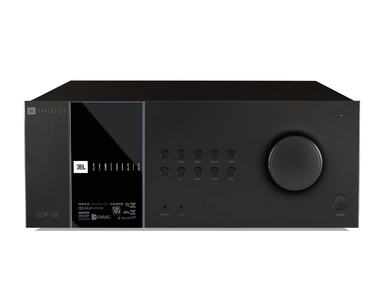 JBL Synthesis SDP-58 AV procesor prostorskega zvoka je zasnovan za izjemno zmogljivost brez kompromisov. Z vrhunsko čistostjo avdio in video signala, 16 kanali nativne obdelave, podporo za Dolby ATMOS®, DTS:X®, Auro 3D®, IMAX® Enhanced, Dirac Live®, Logic16™, Network Streaming in DANTE®, ta procesor ponuja močnejšo, bogatejšo in popolnoma potopitveno izkušnjo z neprimerljivo prilagodljivostjo za vse vrste sistemov domačega kina.