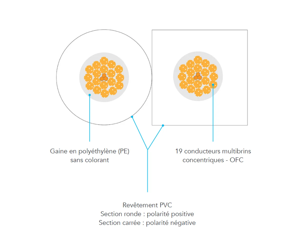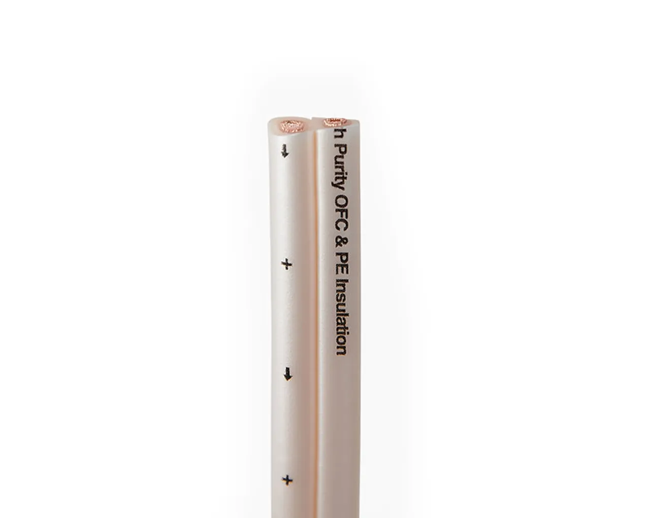 Njegov ovoj iz polietilena brez barvil zagotavlja izjemno čist prenos zvoka, saj optimizira prenos zelo visokih frekvenc in popolnoma ohranja višje harmonike. Vsaka podrobnost je zasnovana za ohranitev glasbene integritete: pozitivna polariteta je v okroglem preseku, negativna pa v kvadratnem.