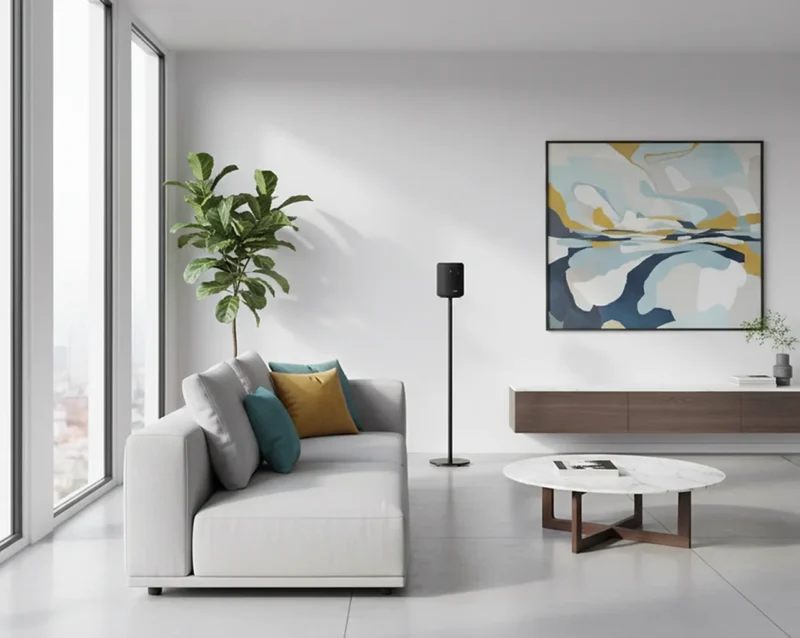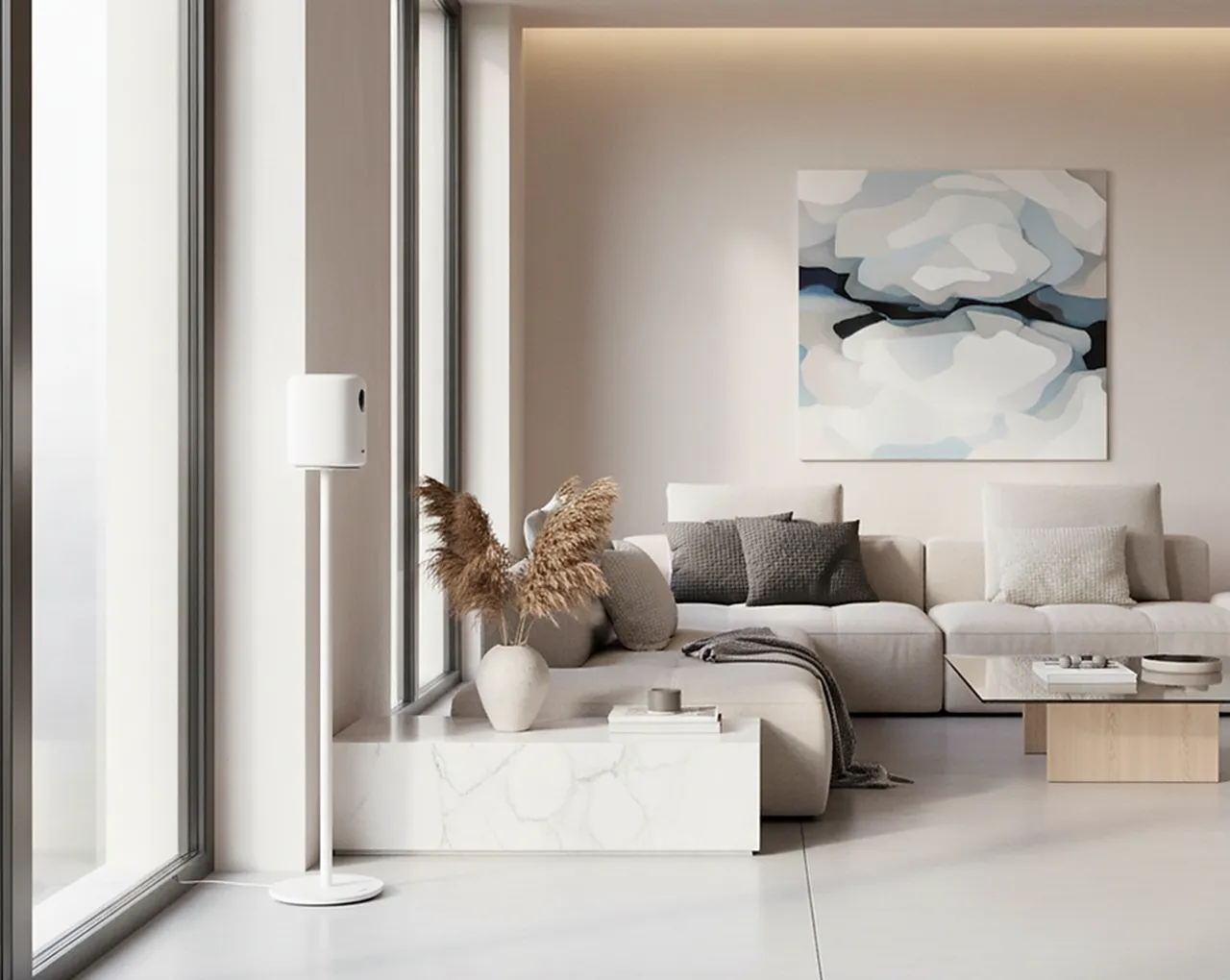 NorStone stojalo za zvočnike WiiM Sound s skritim sistemom za vodenje kablov, ki vaš zvočnik WiiM Sound postavi na popolno višino poslušanja v vsakem sodobnem interierju.