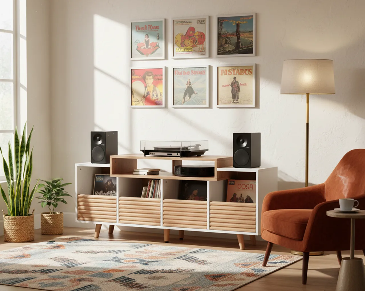 - Prostor za do 320 vinilnih plošč: štirje prostorni predali omogočajo varno in pregledno shranjevanje velike zbirke LP plošč.