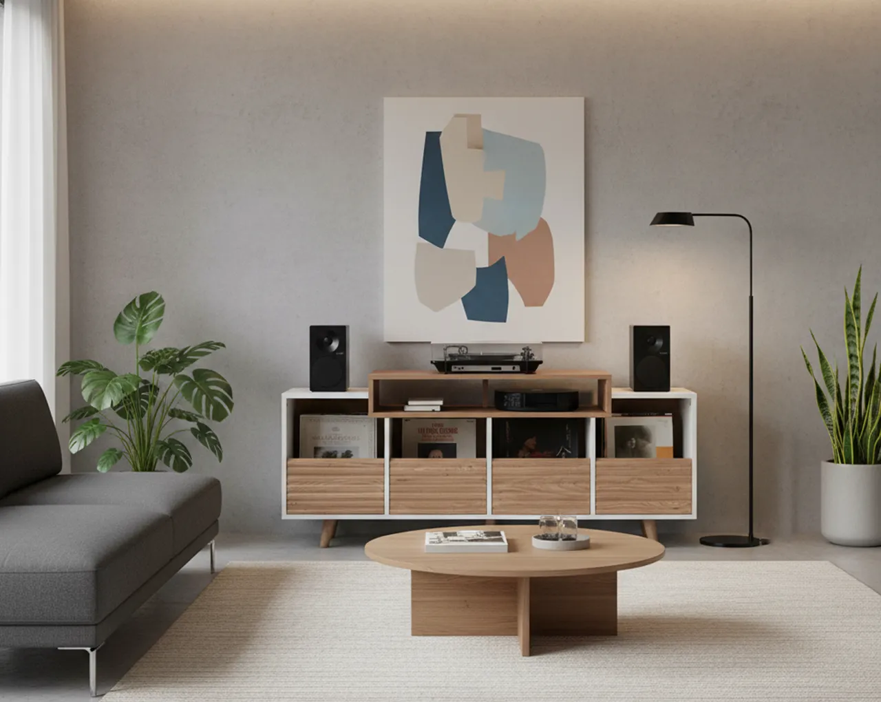 Norstone Oslo 1600 je premium vinilna omarica in Hi-Fi pohištvo, ustvarjeno za zahtevne ljubitelje analognega zvoka, sodobnih avdio sistemov in urejenega poslušalskega kotička. Gre za najbolj celovito rešitev v seriji Oslo, saj združuje prostor za gramofon, elektroniko, zvočnike in obsežno zbirko vinilnih plošč v enem estetsko dovršenem kosu