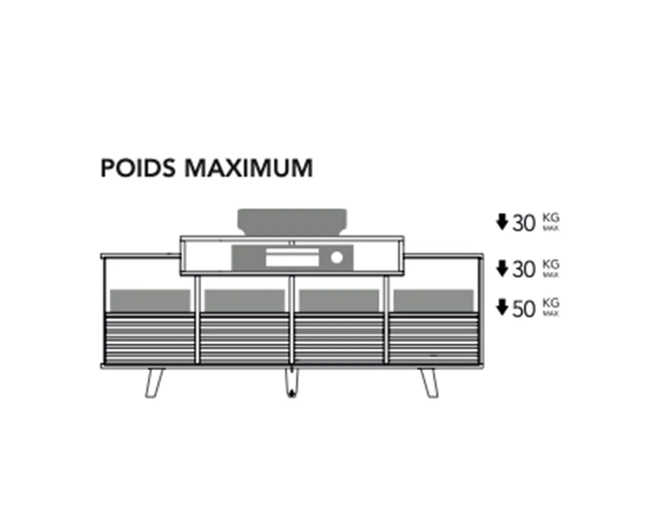 - Širok osrednji prostor za Hi-Fi elektroniko: sredinski oddelek širine 930 mm je idealen za ojačevalnik, streamer, DAC ali drugo avdio opremo.