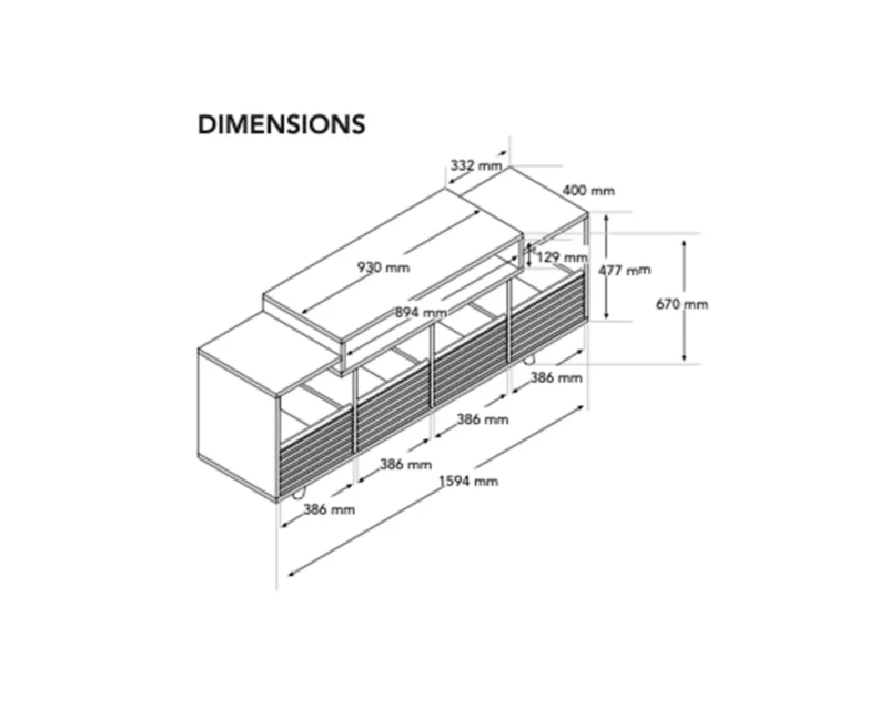 - Dimenzije (Š x V x G): 1594 x 670 x 400 mm