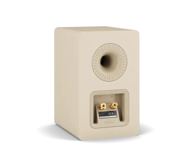 Kompaktni hi-fi zvočniki DALI KUPID v modernem skandinavskem dizajnu, primerni za police ali stensko montažo.