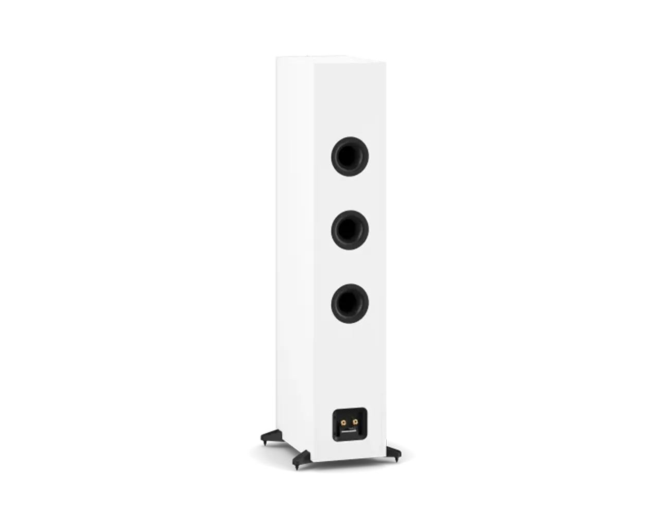 Trije veliki nizkotonci z lahkimi, togimi membranami iz mešanice papirja in lesnih vlaken zagotavljajo hiter odziv in globok razteg nizkih tonov. Bas ni le močan, temveč izjemno definiran – brez zamika, brez zameglitve in brez umetnega poudarjanja.