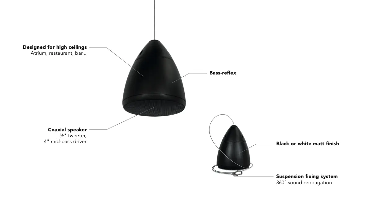 Elipson Bell 4 je zasnovan za obešanje s stropa kot svetilka