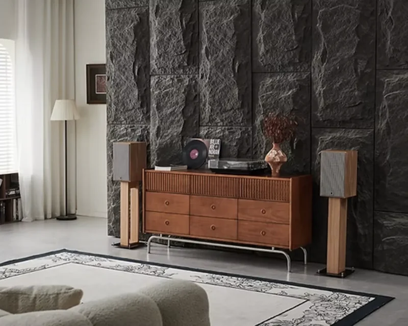 - Opcijska stojala: Možnost uporabe namensko oblikovanih stojal, ki še izboljšajo akustično izkušnjo in estetski vtis.