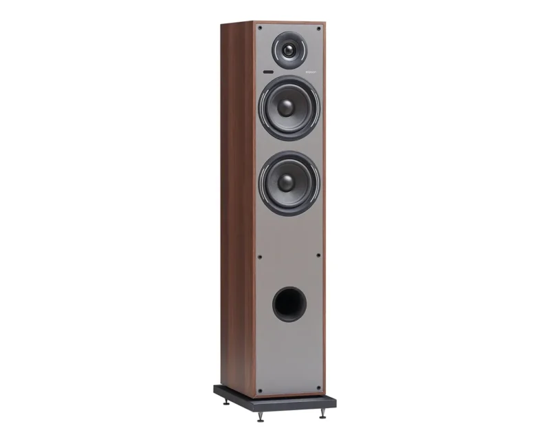 Elegantna vitka oblika in visokokakovostna zaključna obdelava omogočata, da se zvočnik harmonično poda tako v minimalistična kot klasična bivalna okolja. Njegova prednja bass-reflex odprtina omogoča optimalno reprodukcijo nizkih tonov tudi blizu stene, kar olajša postavitev v manjših prostorih ali stanovanjih.